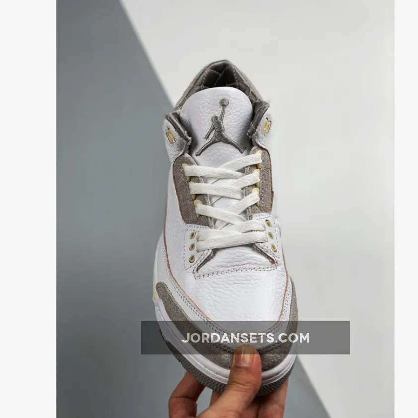 The A Ma Maniére x Jordan 3 White is the latest co-branded Nike Air Jordan sneakers unveiled by James Whitner’s luxury streetwear boutique A Ma Maniere and the Swoosh brand. With new sneakerheads joining the community, the hype behind all Jordan silhouettes is currently more powerful than it has ever been before, with numerous high-profile collaborations and celebrity endorsements responsible for this. This upcoming variant of Michael Jordan’s third signature basketball shoes has been graced by AMA with luxe materials and we can clearly see just from the official images why these are a no-brainer cop for many.Decked out with high-end tumbled leather uppers in white, light grey accents wrap around suede elements throughout for a premium touch. Co-branding details are then finely embroidered onto the tongues of each shoe, with the iconic Jumpman logo appearing on the right and the Atlanta-based “A” motif adorning the left, overall delivering a minimalistic approach that is guaranteed to elevate your sneaker collection to the next level. The A Ma Maniére x Nike Air Jordan 3 is no doubt surrounded by a significant level of hype.