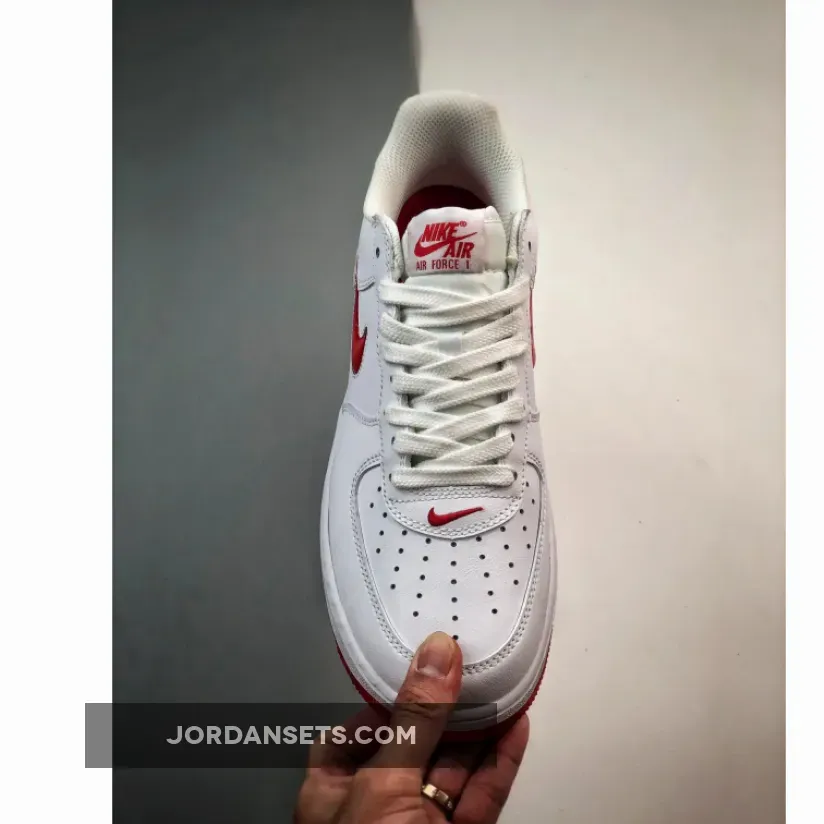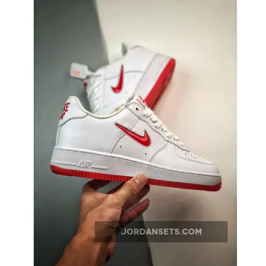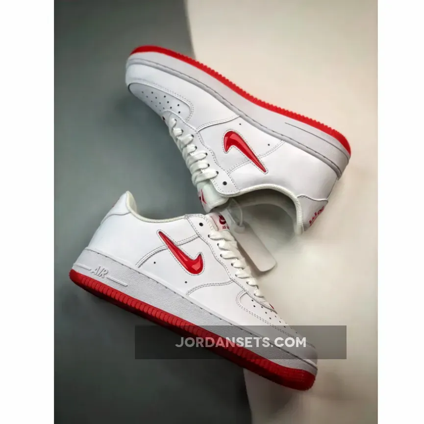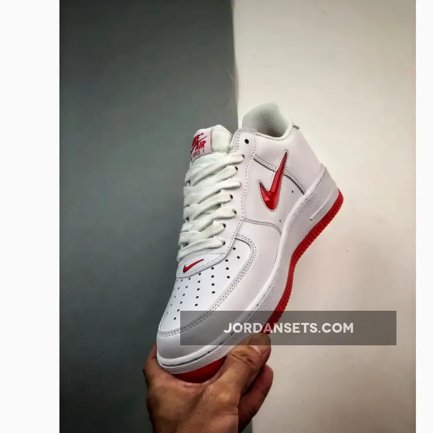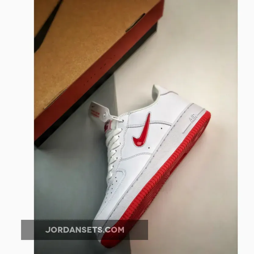 Nike’s Colour of the Month series continues with another tasteful Jewel Swoosh edition. As seen on the Air Max 1 “Jewel OG White” or “Red Ruby” from ‘17, the make-up is something of a legend within the pages of Nike’s catalogue. Combining two pieces of hard-hitting footwear history, this Air Force 1 Low iteration is dripping in heritage, offering up one of the best colourways from the CotM series so far.The upper is formed from a typical white leather, with branding details adopting a heavy shade of red. A mini Swoosh sits underneath a set of flat white laces, with a traditional “Nike Air” woven into the tongue label. Of course, the standout piece remains the large Jewel Swoosh which takes its position proudly on the lateral and medial sidewalls. A red sock liner tucked inside adds more cushioning to the already thick AF1 midsole, while underneath the star count and pivot circles are coated in a familiar shade of red. Although these are a far cry from what is commonly regarded as ‘red bottoms’, don’t be surprised if sneakerheads start running with the nickname. For any further information on this pair of Nike Air Force 1 Low Colour of the Month “White Red”, keep it locked to Our Store Supplier.