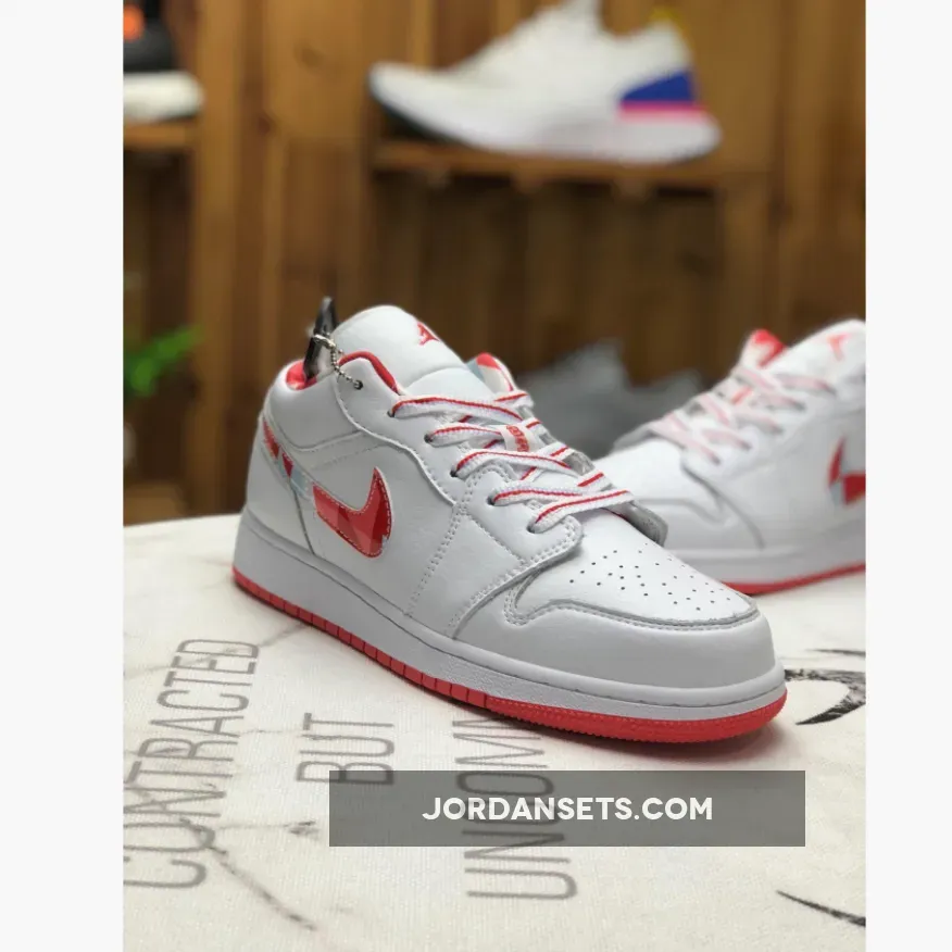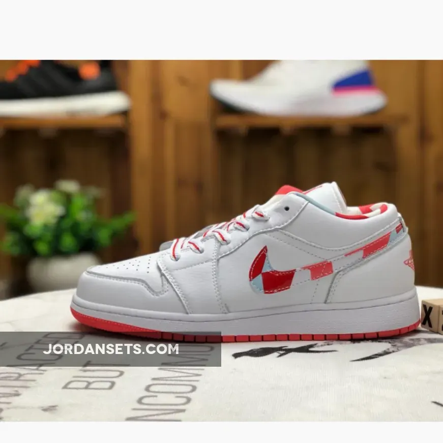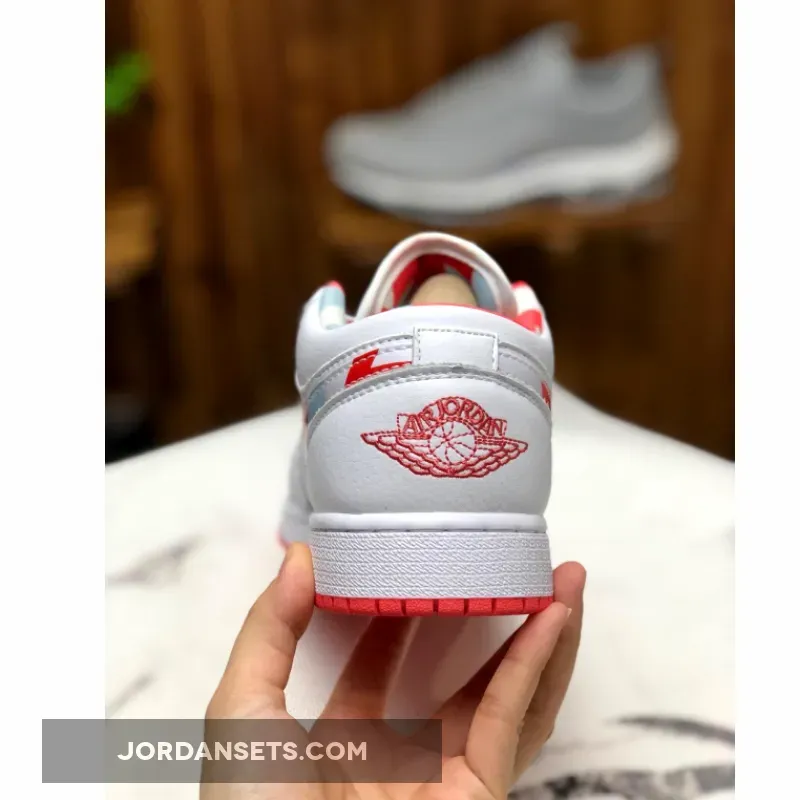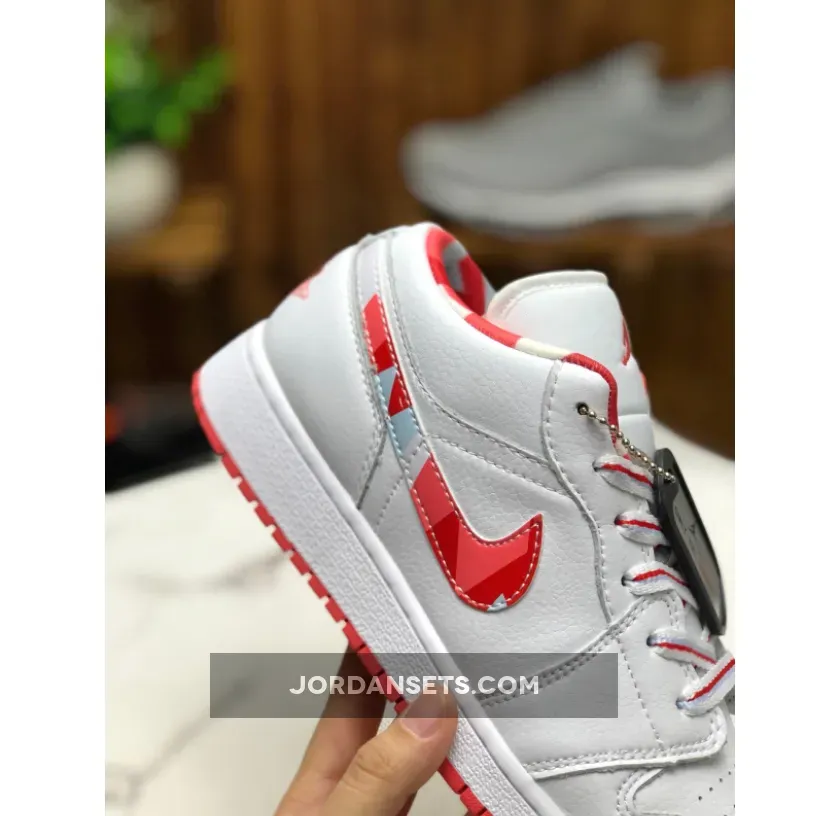 Dressed in a White and Topaz Mist color scheme. Both are constructed with a White leather upper accented in Red and Light Blue accents. Added detailing is found on the Air Jordan 1 Low with a patterned-styled Swoosh. Air Jordan 1 Mid GS Color: White/Topaz Mist Style Code: 555112-104