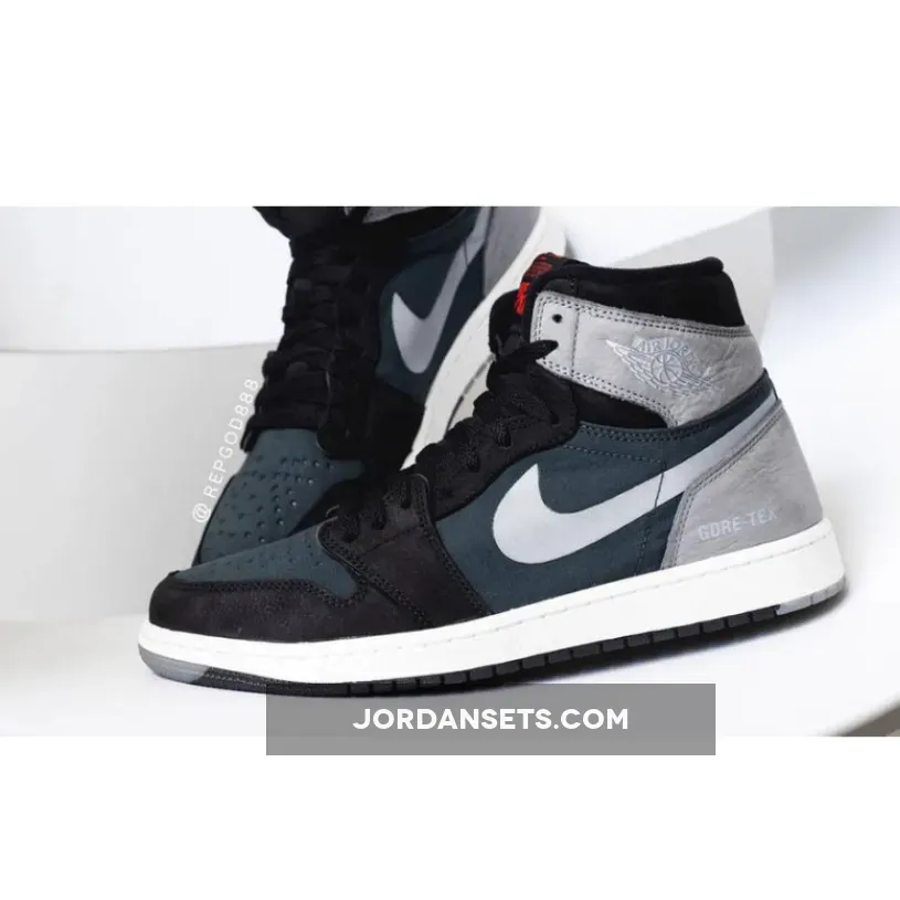 Perfectly designed for the cooler days ahead, the Air Jordan 1 Element Gore-Tex Shadow boasts a snug fabric that’s both waterproof yet breathable. The pair begins with the eponymous resilient Gore-Tex material in a deep blue-green hue, covering the toe and lateral areas. It is then dressed with black leather overlays in the toe cap and eye stays. Complementing this colour combination in the upper are the hints of silver in the ankle collar and heel. The final sleek touch comes in the Nike Swoosh branding which is given a unique reflective feature.