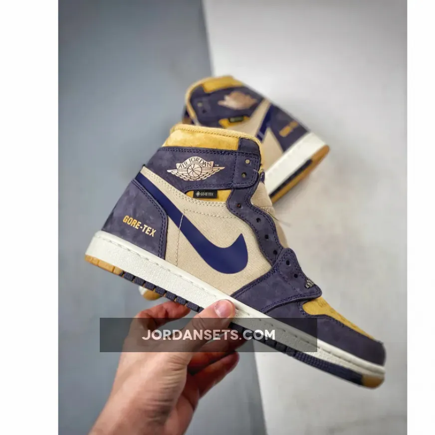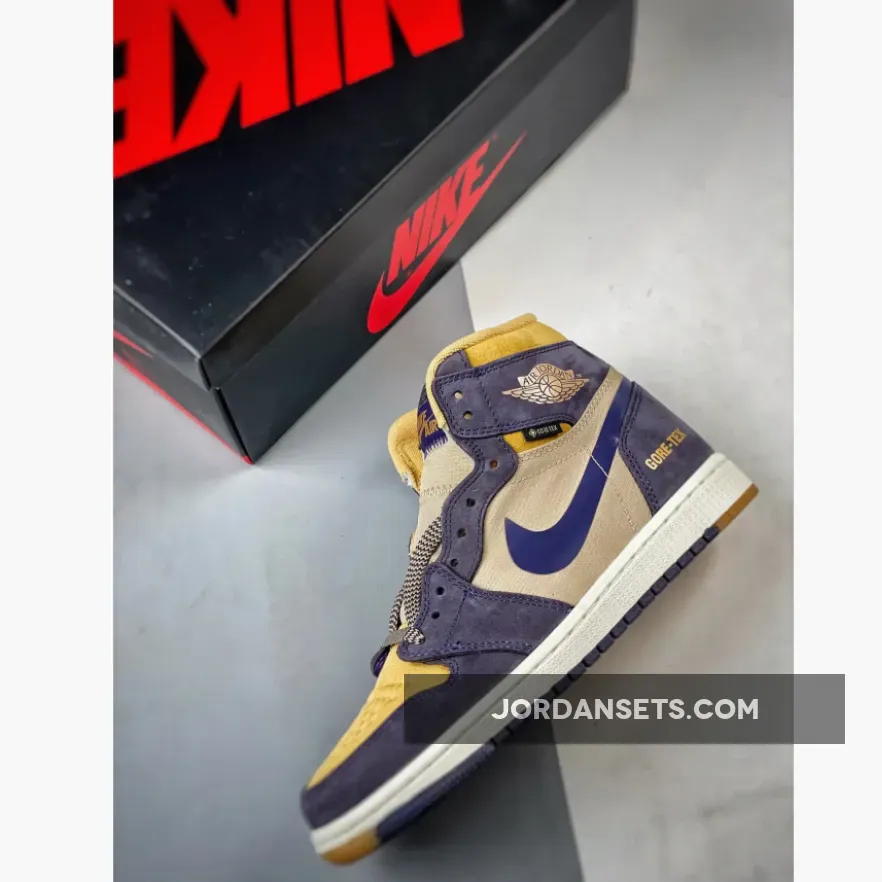 Cloaked in a muted Sky J Purple, Shimmer, Honeycomb, Sail, and Black palette, this iteration of the Air Jordan 1 showcases waterproof GORE-TEX lining within its upper, expertly crafted from a blend of textile and nubuck overlays. The 3M reflective accents, Nike Air emblem on the woven tongue tags, and GORE-TEX branding on the lateral heel enhance the overall aesthetics. A marbled rubber outsole serves as the perfect foundation, completing the sneaker’s statement design.