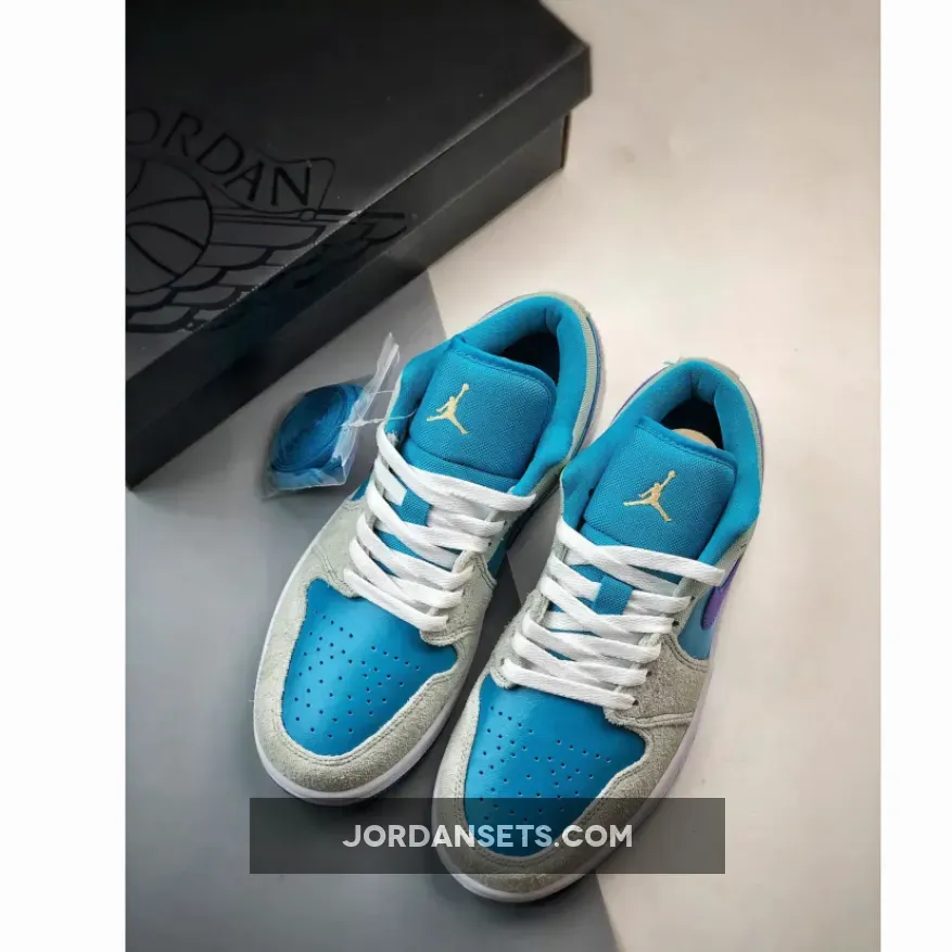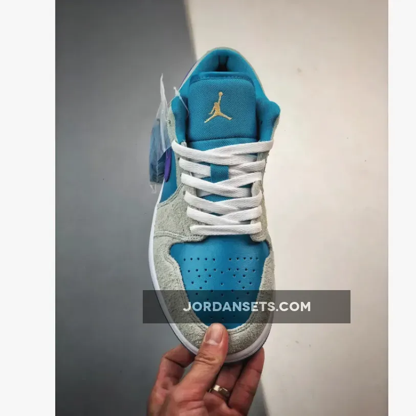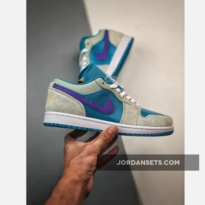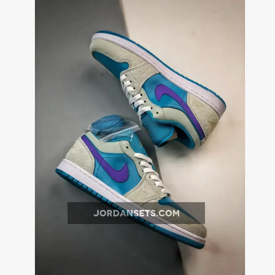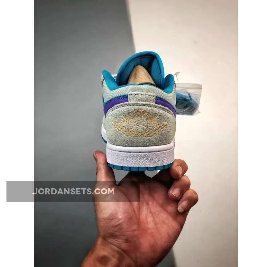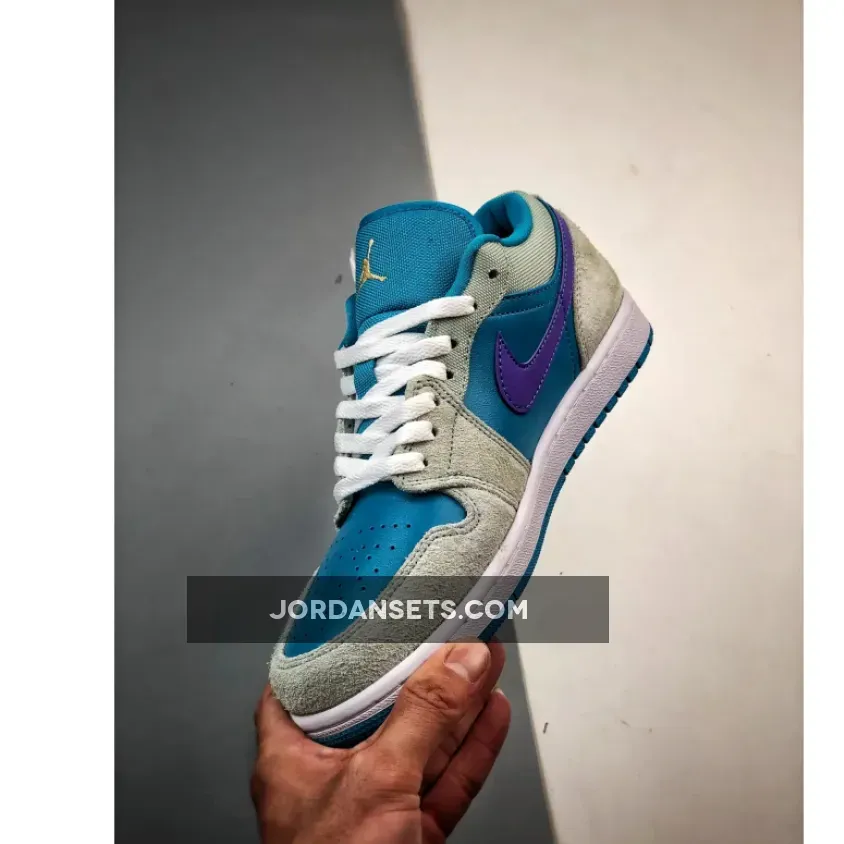Hydrated hues take over the Air Jordan 1 Low as the upper gets drenched in “Aquatone” leather. Shaggy “Light Bone” suede dresses the overlays while the signature Nike Swoosh stands out in vibrant “Concord.”