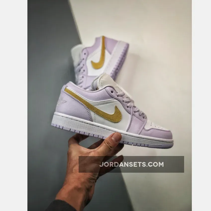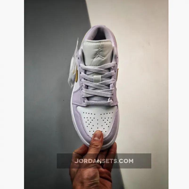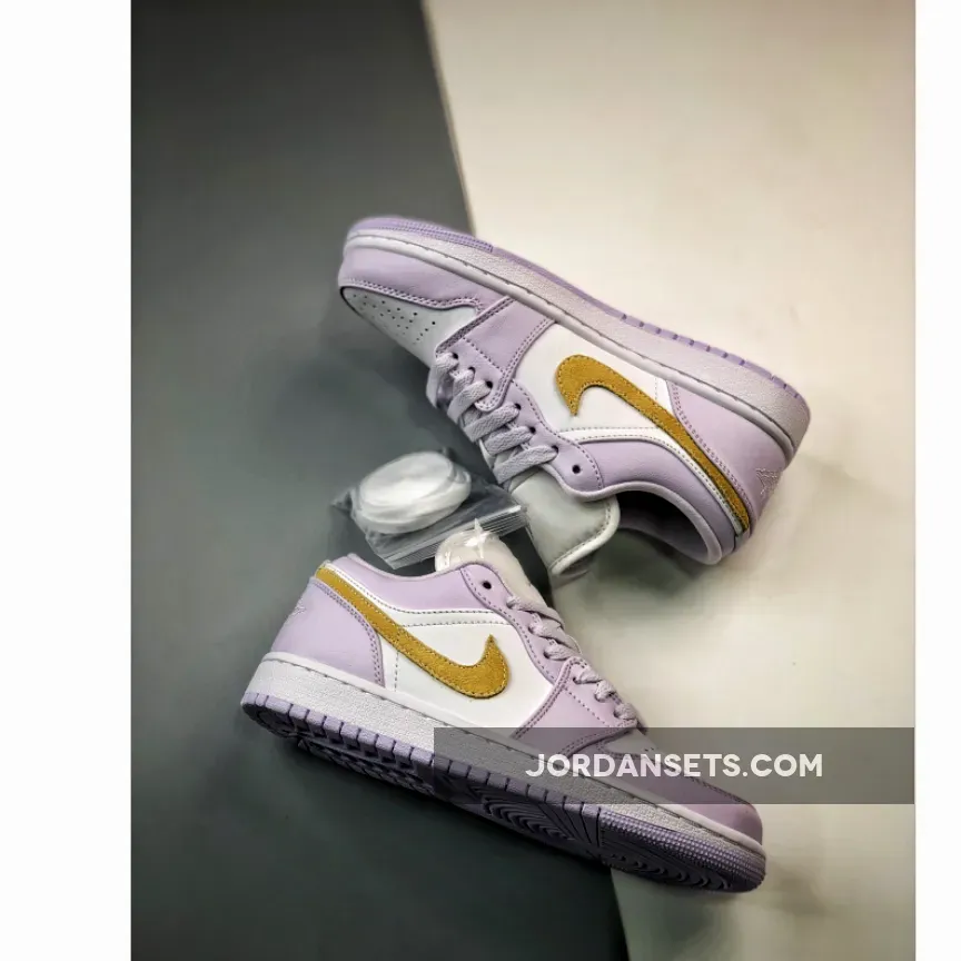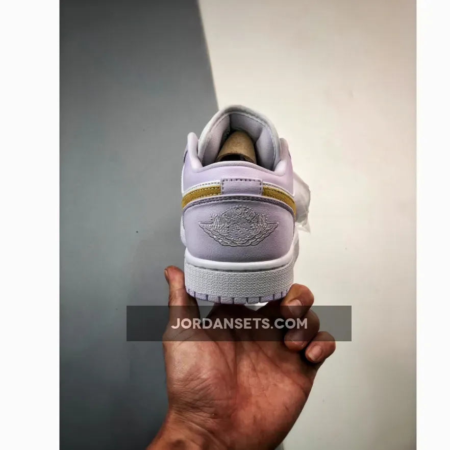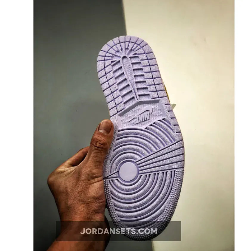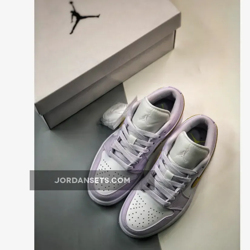 When Peter Moore introduced the Air Jordan 1 in 1985 as Michael Jordan’s first signature basketball sneaker, it was an instant hit with the audience and sneaker enthusiasts. Today, the AJ1 is more than just a hoops classic; it’s a lifestyle model loved by the masses. Now arriving in its classic low-top version, the new Air Jordan 1 Low Barely Grape colourway is a must-have for fans of pastel colours.The upper is crafted with a smooth leather base in white and lilac. The perforated toe boxes and quarter panels opt for the white colour, leaving the overlaying counterparts with the very light purple tone. On the contrary, the Nike Swooshes on the lateral and medial sides feature suede material in yellow, adding an eye-catching feature to the trainers.