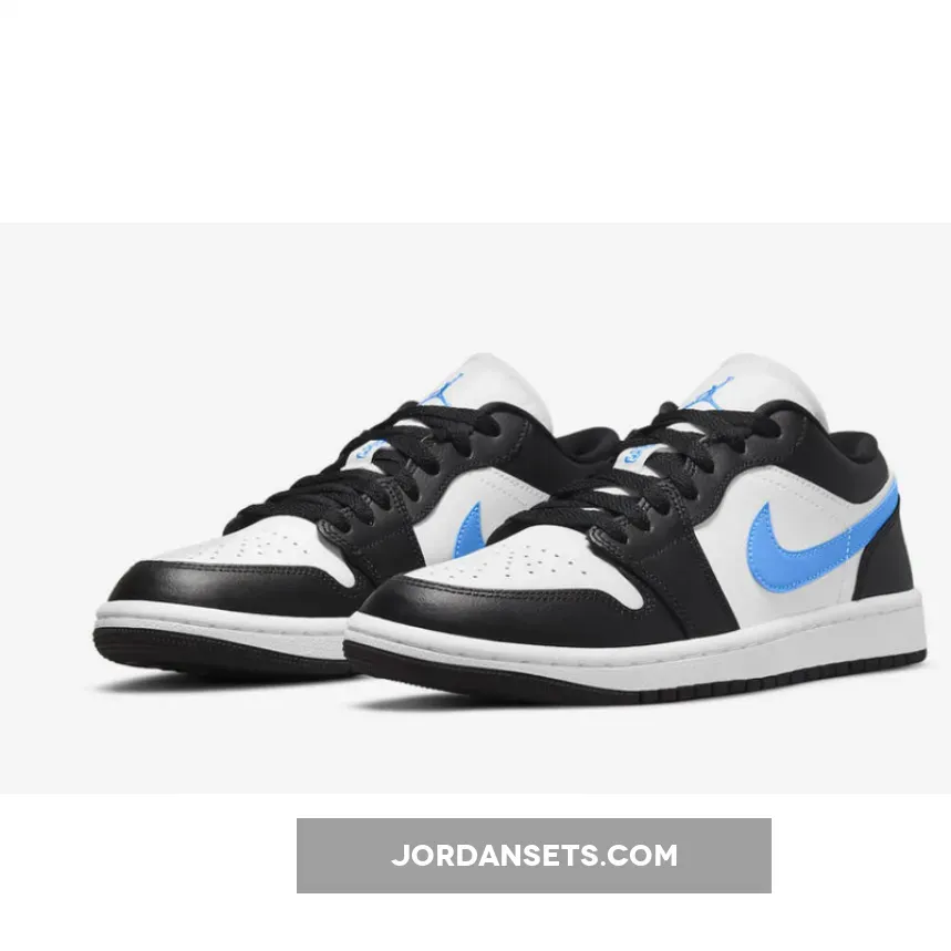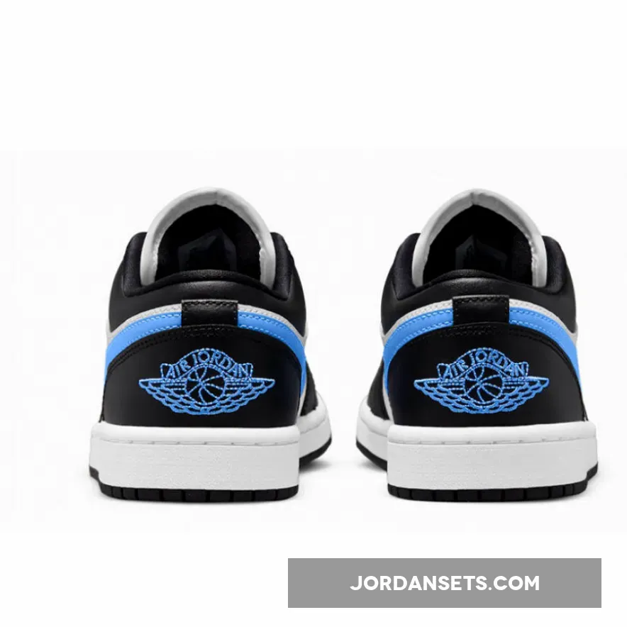 Air Jordan 1 Low Black University Blue is here to show that classics will never let you down. This casual low-top shoe starts with a classic white leather base and is reinforced with sleek black leather overlays. If you’re looking for a fresh everyday shoe, this Air Jordan 1 Low is definitely a choice you won’t regret.