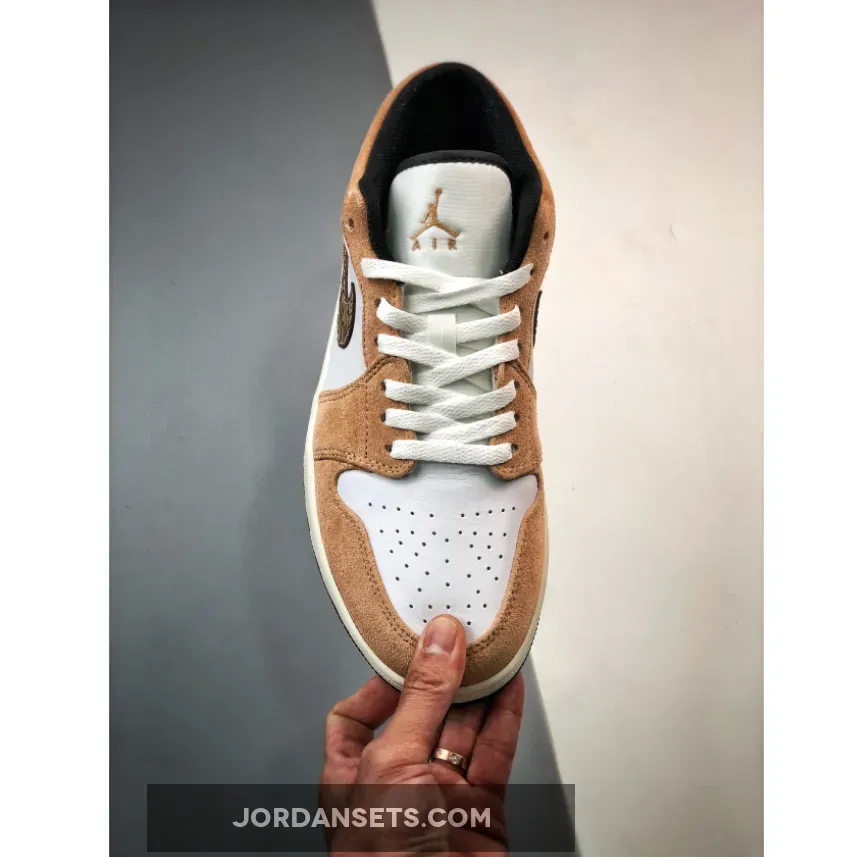 The Air Jordan 1 Low SE Brown Elephant is a low-top take on the eclectic elephant print which lands on the signature Swoosh appliqué. It’s laid over a fresh-white leather base and framed with tactile beige suede panelling via the mudguard, eye stays and heel panel. Meanwhile, hits of black come in via the tongue trim, airy mesh lining and the multi-textured outsole. In terms of comfort, you get a classic perforated toe box for perfect ventilation no matter the season. Final branding cues come in via the golden-ochre Jumpman logo on the tongue and the Wings motif on the heel.