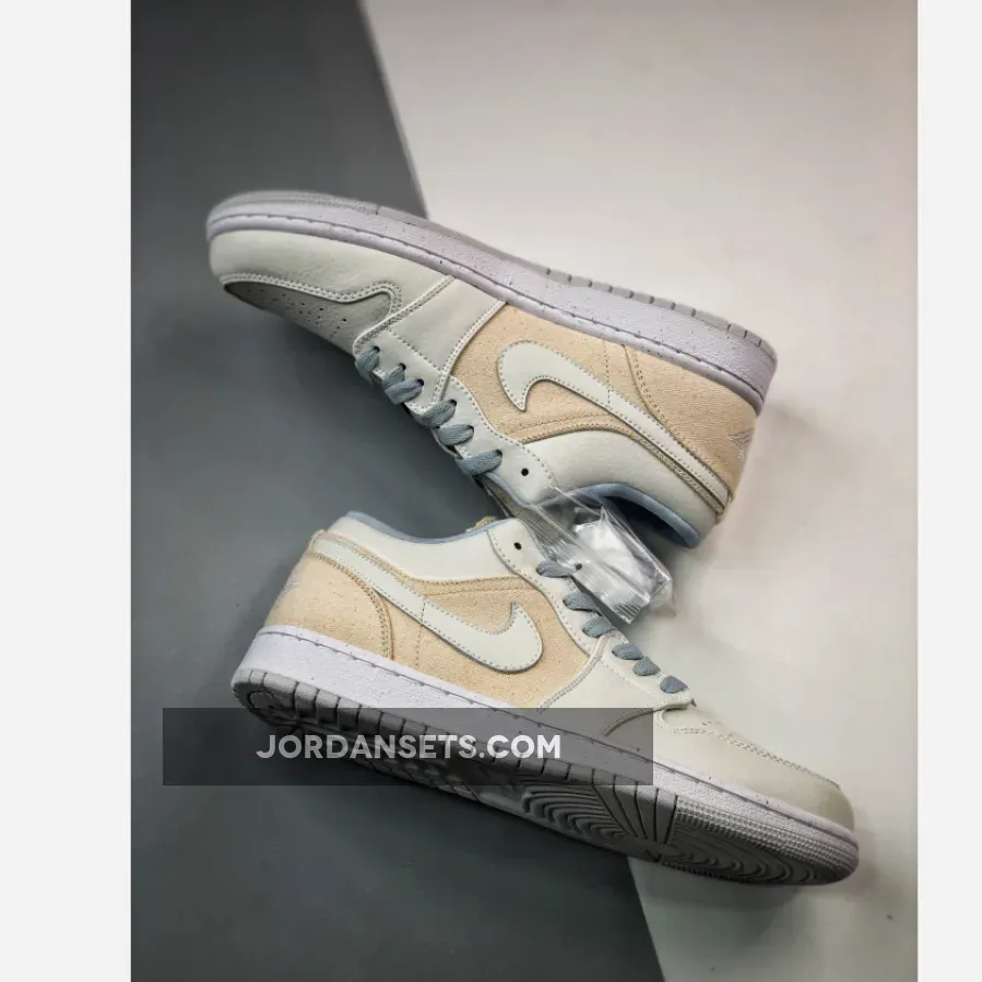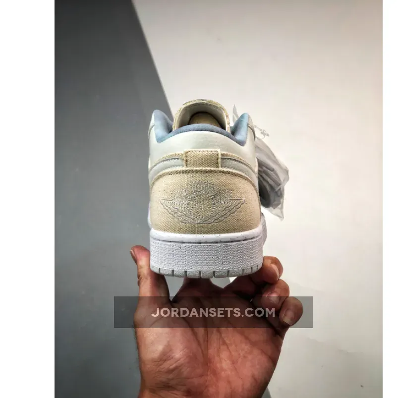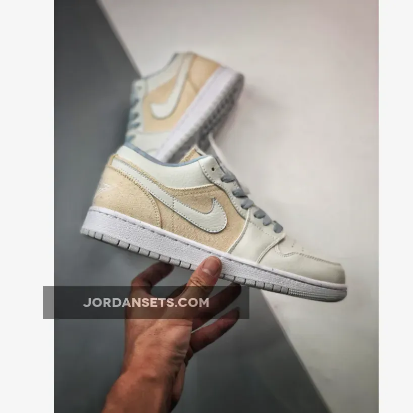 The Air Jordan 1 Low Canvas Blue Beige features a rare dainty take on the basketball slash lifestyle silhouette. Gone is the typical AJ1 colourway arrangement and in its place is an ethereal palette showcasing a light blue leather upper that’s nicely complemented with beige canvas side panels.