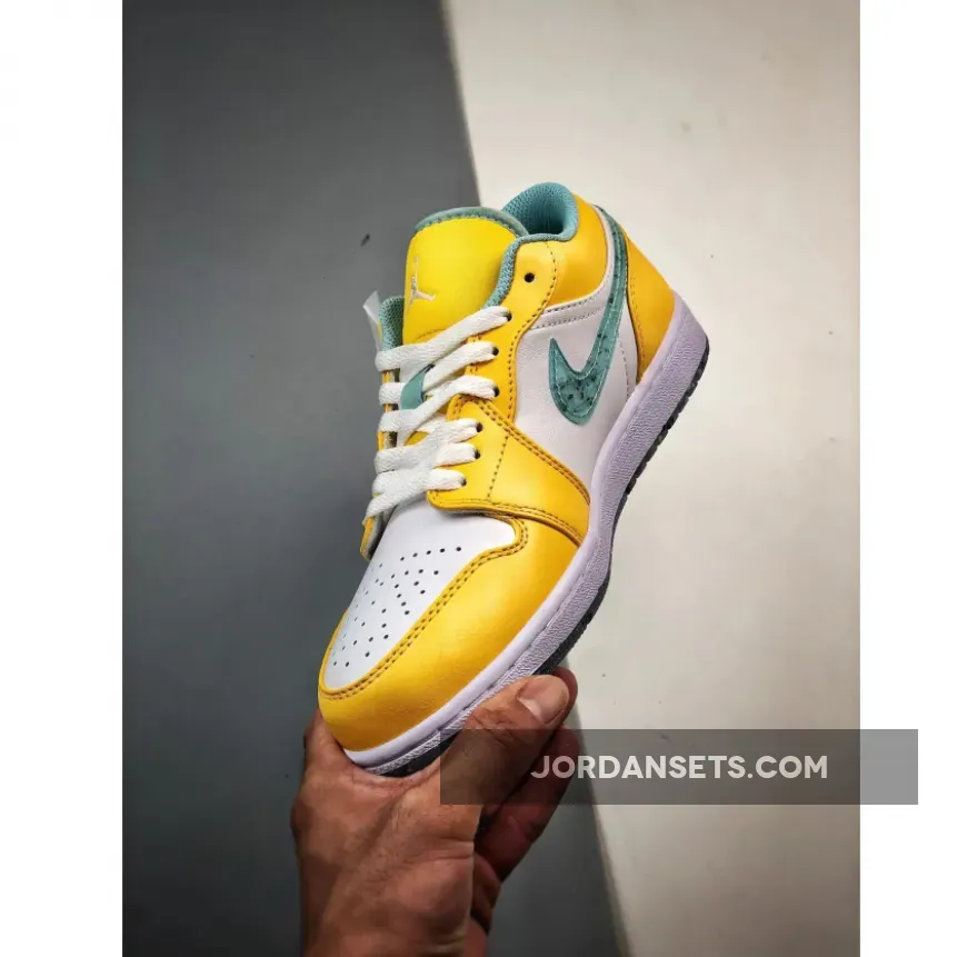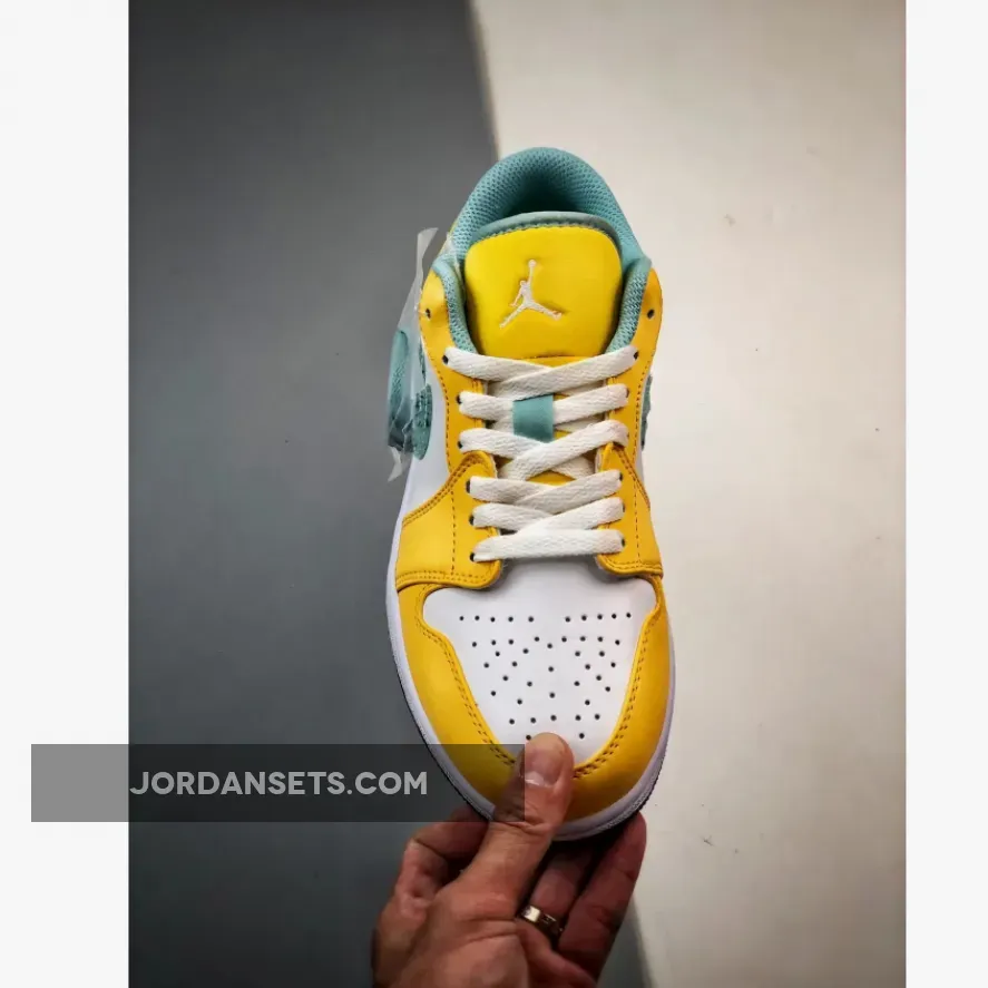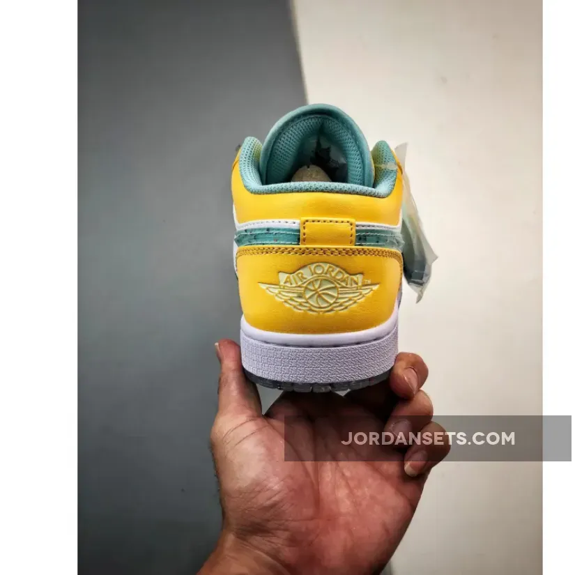 This Air Jordan 1 Low for the little footers takes on a simple two-tone look on the upper as the shoe is constructed out of a White leather base along with Citron Pulse on the overlays. The sneaker features light blue trim on the tongue and lining, which complements the tinted translucent grind rubber. The signature Nike Swoosh has a grind rubber pattern as well as the outsole. Action Green insoles and white detailing on the rest of the branding and midsoles finish off this Air Jordan 1 Low .