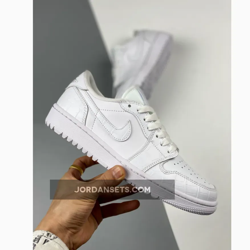 It is no secret that Michael Jordan is a fan of golf. Having picked up the sport during his time at the Chicago Bulls as a way to blow off steam, Jordan Brand designed Golf versions of his Air Jordan line for him to T off in. As a result, there has been a range of Air Jordan Golf releases for the average sneakerhead, however, whether any of them see a Green is another thing in itself.The Air Jordan 1 Low is back in its golf makeup, now sporting a mock-crocodile upper to take a walk on the premium side. The all-white upper removes the colourway from the centre view and points the camera towards the material quality instead. The fake crocodile leather on the toe guard, Swoosh and heel panels nod to the traditional shoes that were often seen in the sport, most of which boasted the real thing. Smooth leather can be found on the sidewall and toe box, forgoing the crocodile texture seen on the other panels, providing the flexion needed for the upper to remain comfortable.If you’re after this pair of Air Jordan 1 Low Golf in “Croc White” for the collection, then be sure to check out Our Store Supplier for more details on the drop.