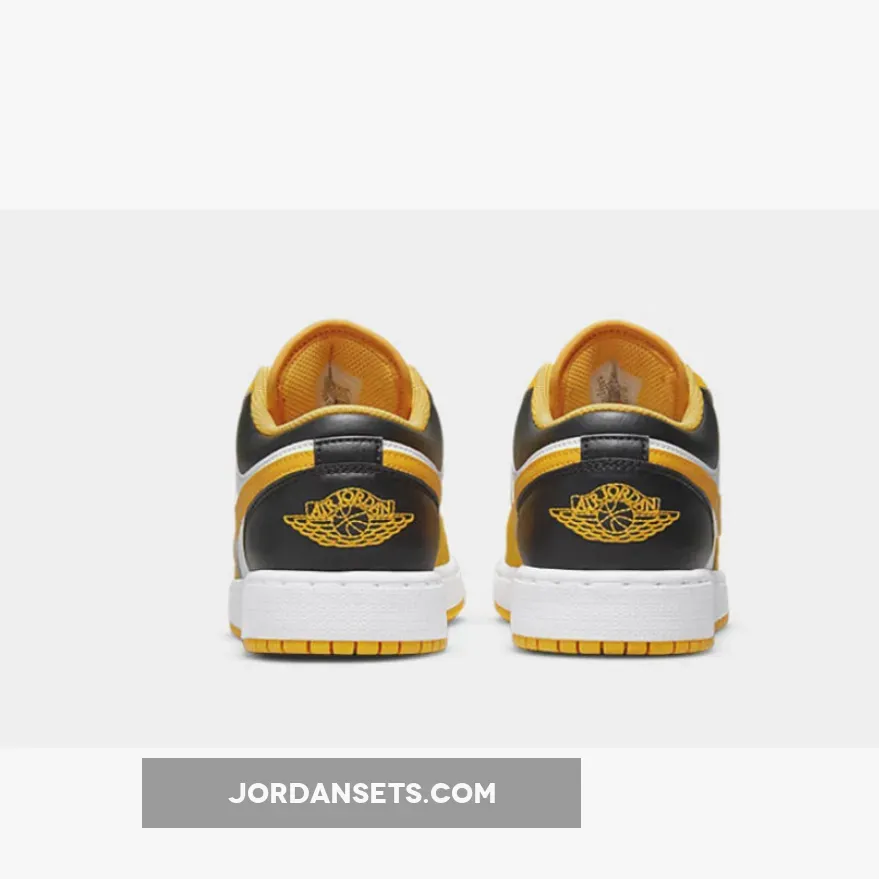The latest Air Jordan 1 Low variant alludes to the iconic NYC yellow cabs. Meet the Air Jordan 1 Low Taxi. This traffic-stopping AJ1 Low has a white smooth leather base. The overlays are in a contrasting golden yellow. The oversized nylon tongue is a deeper yellow veering towards orange and shows off a black embroidered Jumpman logo. The collar, heel counter and laces are all pitch-black, making the yellows of the shoe stand out. A golden yellow Wings logo is embroidered on the black heel counter.
