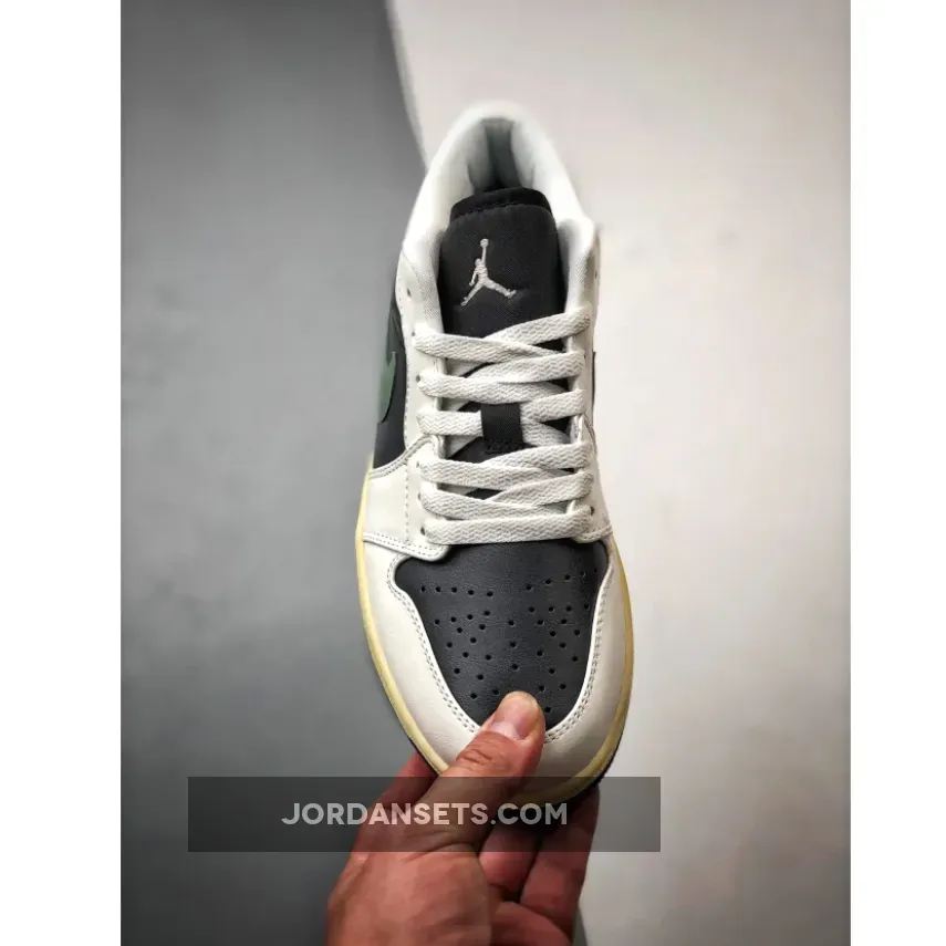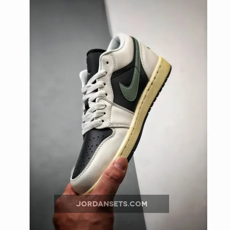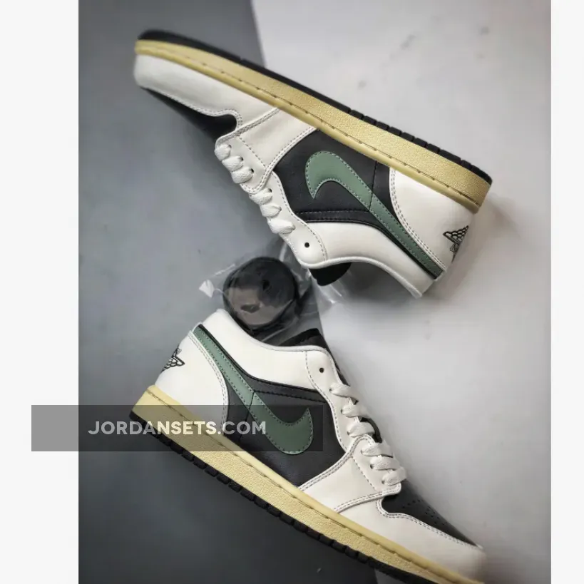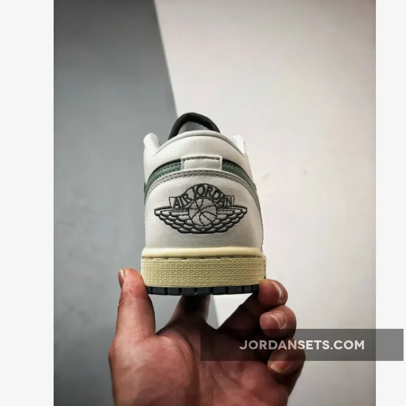 Jade Smoke accents on the Swoosh logos provide a captivating contrast, complemented by White Jumpman logos on the tongues and insoles. A vintage aesthetic is achieved with the Legend Sand midsole, rounding off the design seamlessly.