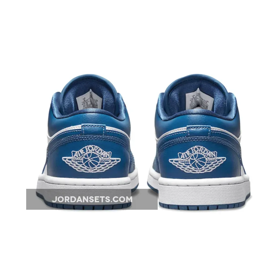 “Love my new Air Jordan 1 Lows! Quality is top-notch, white leather base looks crisp, Marina Blue overlays pop nicely. Comfy fit & sturdy sole – definite winner!”
