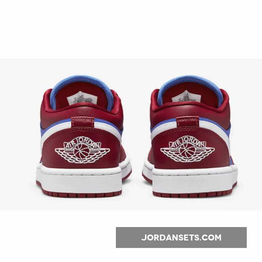 The Jordan Brand adds a vibrant brand new colourway to its Air Jordan 1 Low lineup in time for the arrival of spring. Introducing the Air Jordan 1 Low Pomegranate Blue.Dressed in a “Pomegranate/ Medium Blue/ White” colour scheme, this AJ1 Low comes constructed in smooth leather featuring a Medium Blue base showing on the toe box and the quarter with deep red Pomegranate overlays on the toe cap, the eyestay panel, the collar and the cupsole, matching the laces and the rubber outsole. White branding on the tongues, the signature profile Swooshes on both the medial and lateral sides of the shoe and the Wings logo on the heels completes the shoe’s design.
