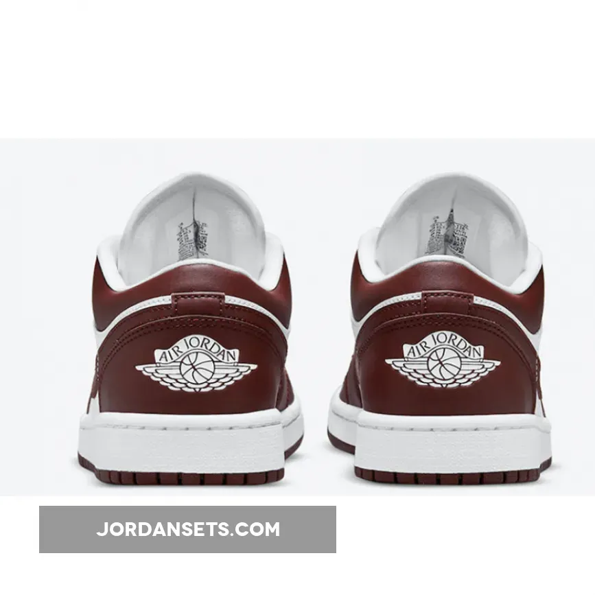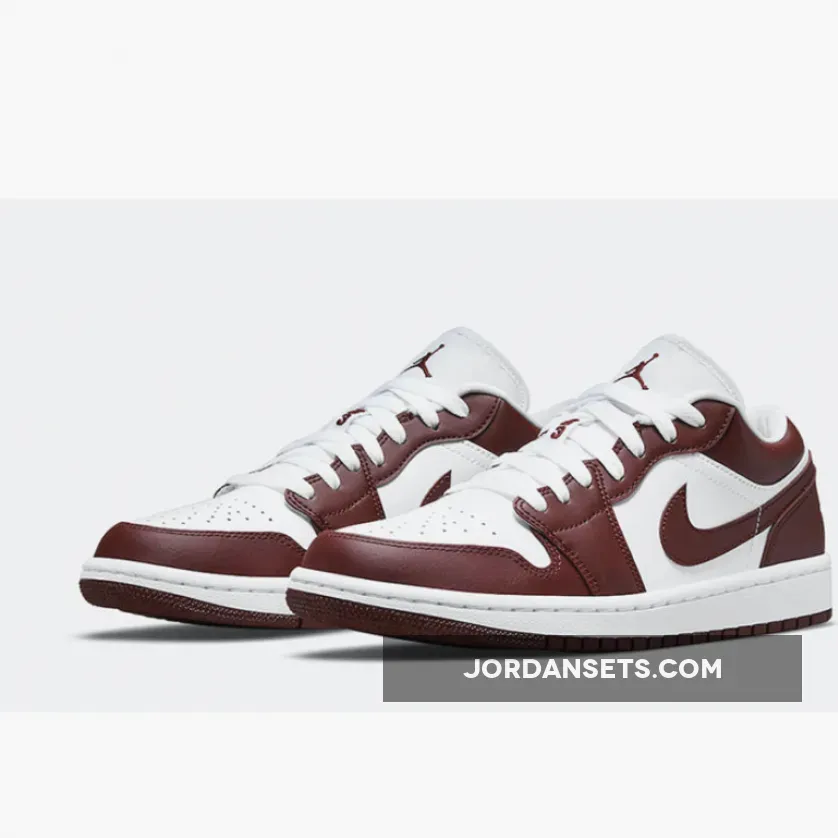 The women’s Air Jordan 1 Low ‘Bronze Eclipse’ treats the iconic model to an elemental two-tone color scheme. The low-top utilizes a leather upper that pairs a crisp white base with contrasting burgundy overlays along the forefoot, collar and heel. Color-matched accents include ‘23’ lace keepers and a Jumpman icon embroidered on the white nylon tongue. A classic Wings logo decorates the sneaker’s back heel. A rubber cupsole, complete with a Nike Air unit encapsulated in the heel, anchors the low-profile silhouette.