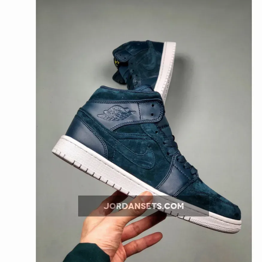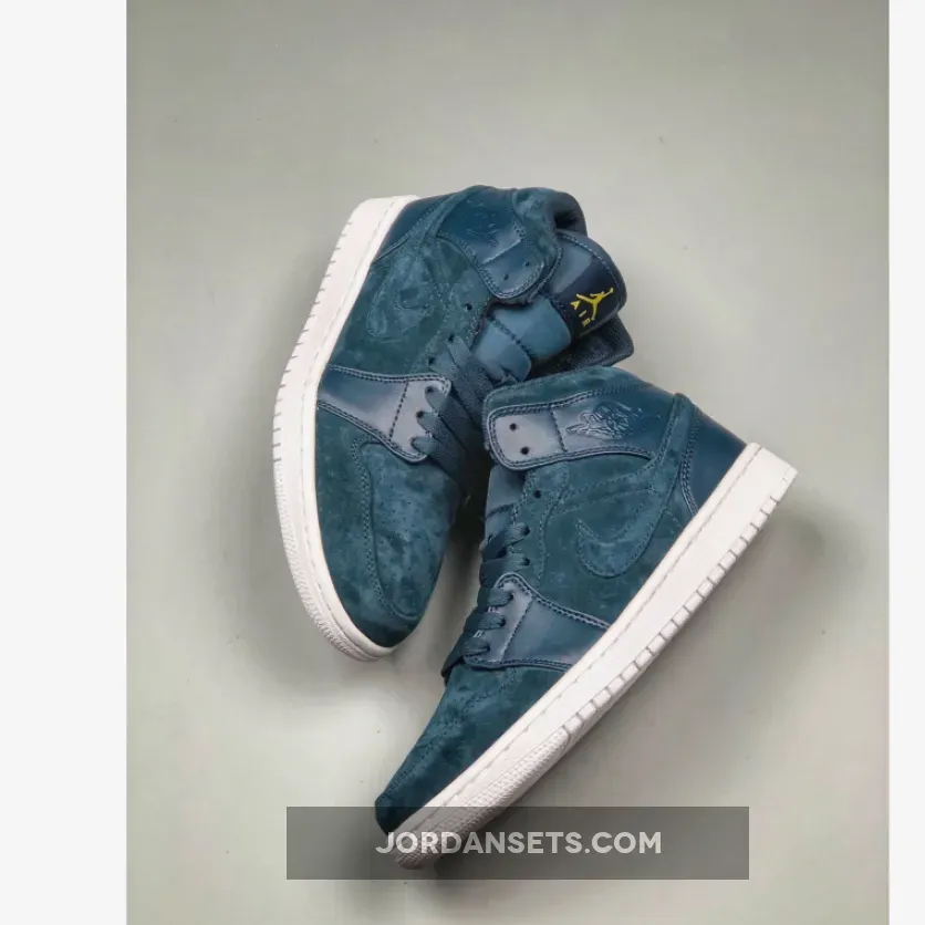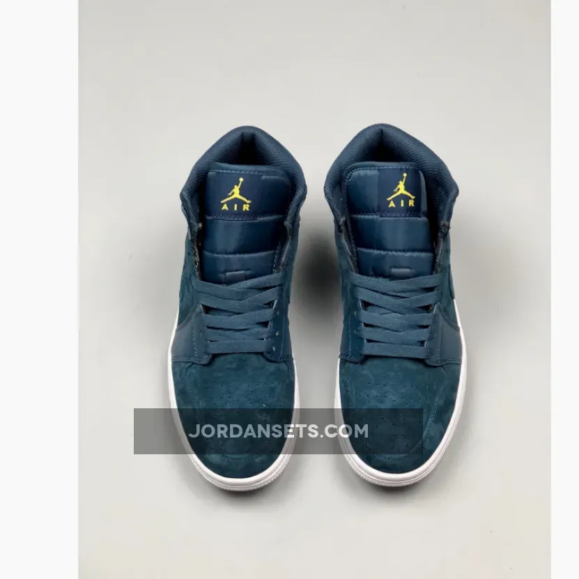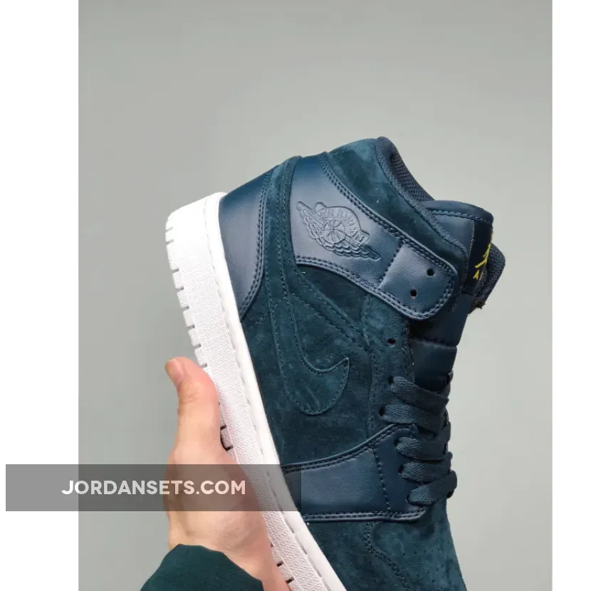 Dressed in a Armory Navy, White and Electrolime color scheme. This Air Jordan 1 is constructed with a mix of suede and leather, along with Bright Yellow touches on the tongue atop a clean White sole.