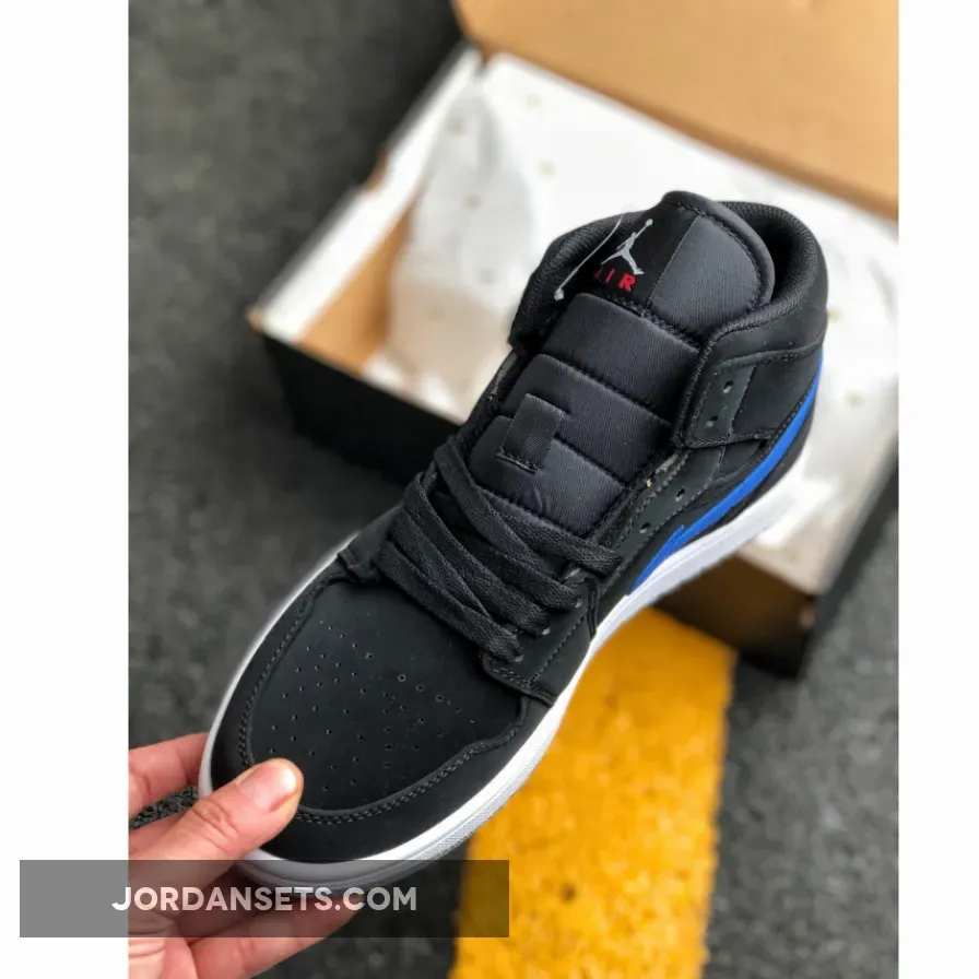 An on-court sensation since its debut in 1985, the Air Jordan 1 Mid takes inspiration from the original Air Jordan 1. This mid-top rendition adds luxe texture and a bold sensibility to the timeless design. It features an all-black suede and synthetic upper that’s punctuated with classic detailing along the quarter panel. The lateral side shows off a Universal Red Swoosh, while the medial side showcases a Hyper Royal Swoosh. An Air Jordan Wings and Jumpman logo round out this stylish design.