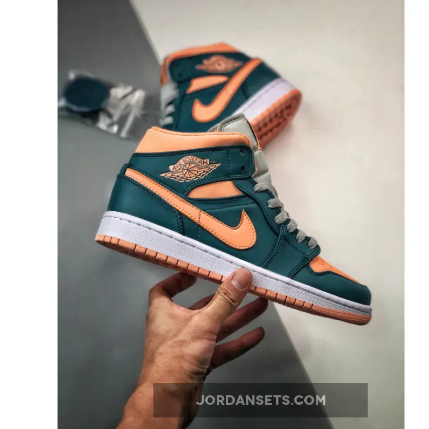 The Air Jordan 1 Mid Dark Teal Green double down on the summer vibes with its two-toned colourway that’s tranquil yet also bright at the same time. This all-leather pair features peach-toned perforated toe boxes, collar and Swooshes which are nicely contrasted by dark teal side panels, mudguard, eye stays, heel and ankle flap. The result is a beach-ready look that matches perfectly with your breezy outfits.
