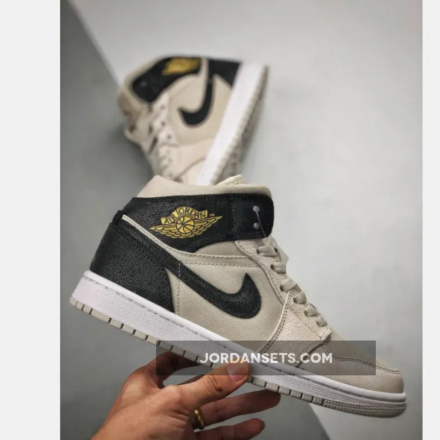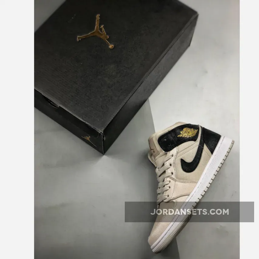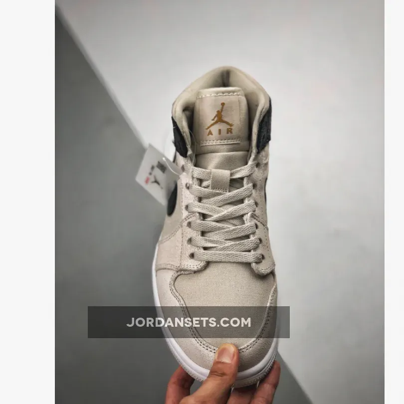 Being specific, this Air Jordan 1 comes dressed in a Light Bone, Metallic Gold and Black color theme. As for materials, we have canvas used across the base while suede lands on the overlays and Nike Swoosh. Across the heel and Swoosh is Black while Light Bone lands on the collar, tongue, laces and base. Added for a premium look is Metallic Gold which is applied to the Wings and Jumpman branding. Finishing the look is White on the midsole and Light Bone on the outsole.