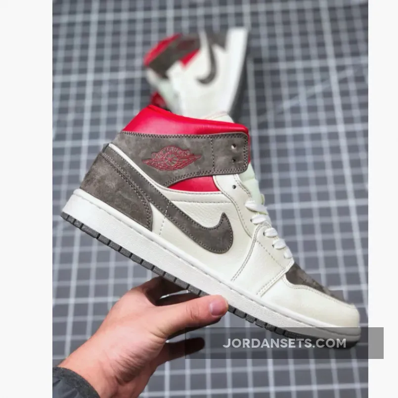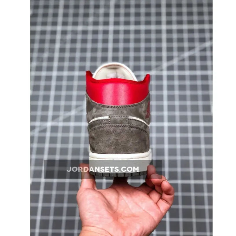 We received a first viewing via SNS founders Erik Fagerlind and Peter Jansson. This Air Jordan 1 Mid comes with tumbled leather across the upper which is done in Sail. Following we have Grey suede placed on the toe box and Swoosh while the same shade covers the rubber outsole. Red then lands on the ankle and outlines the Wings logo while a Sneakersnstuff hangtag completes the look.