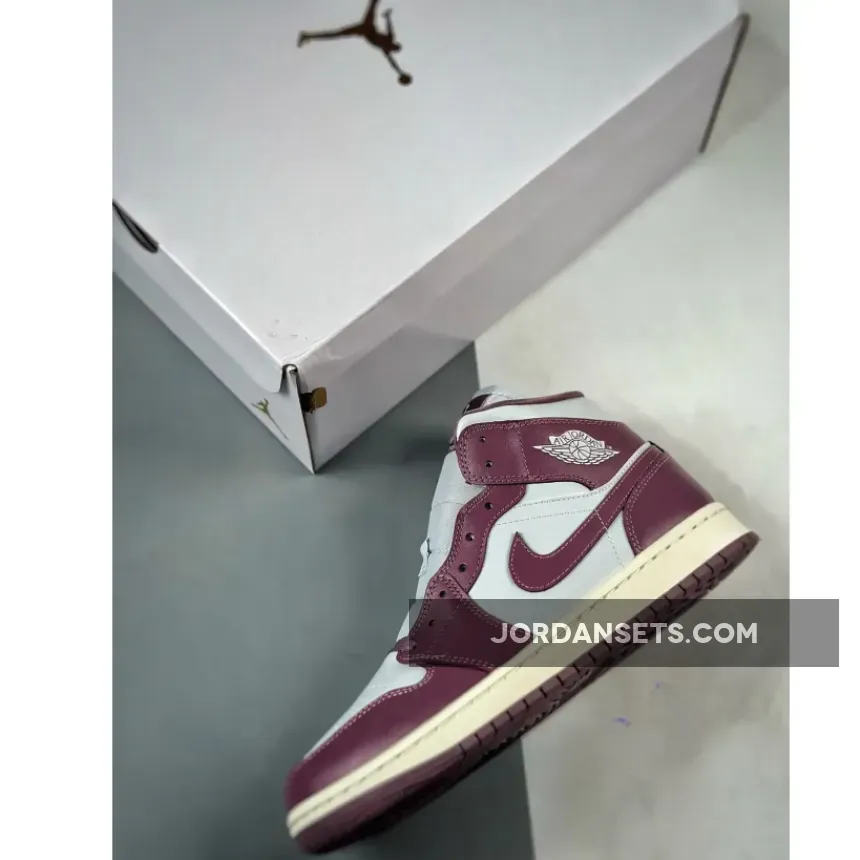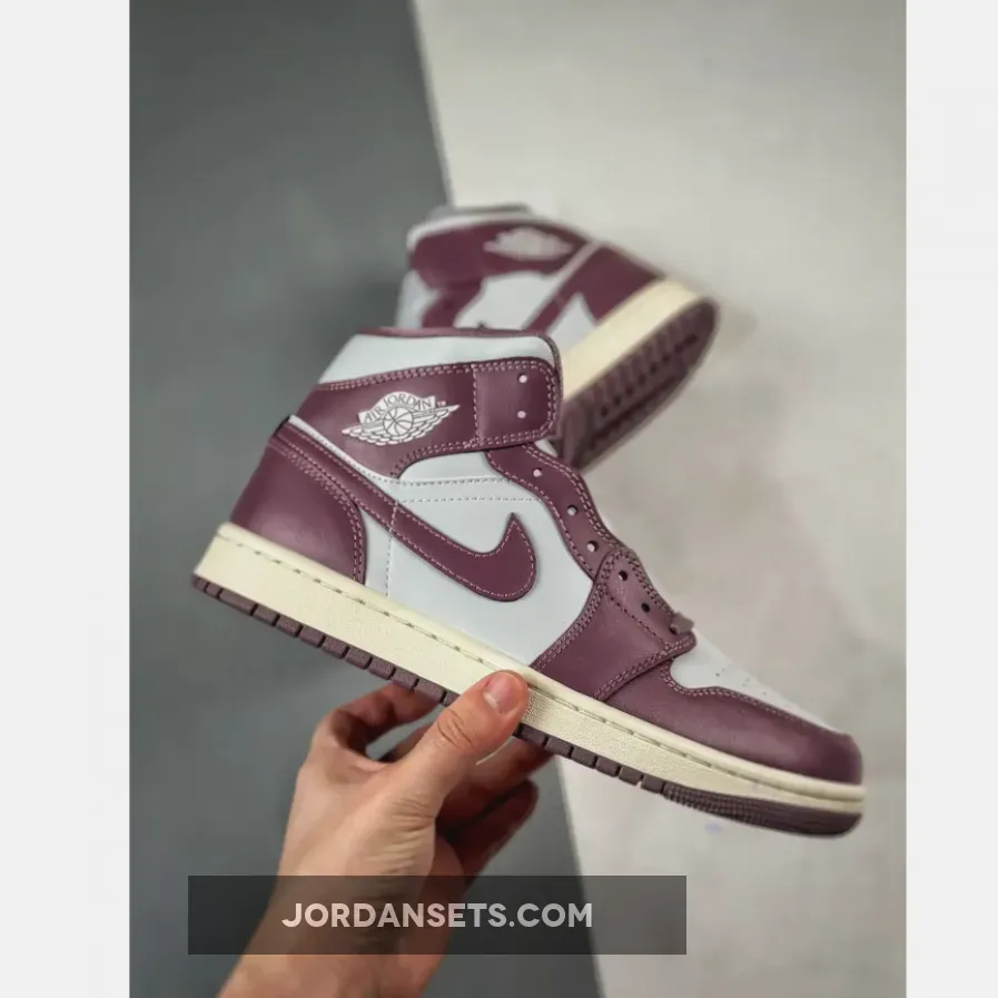 The Jordan 1 Mid boasts a stunning two-tone look. The dominant Sky J Mauve shades cover the mudguard, eyestays, heel overlay, and collar, while Pure Platinum leather graces the toebox, quarter panel, and collar, creating a well-balanced contrast. Mauve accents continue on the lace set, sockliner, Swooshes, and tongue tags, while the Jumpman and Jordan Wings logos boldly stand out in Pure Platinum. The sneaker is completed with a Sail midsole atop a Mauve rubber outsole.