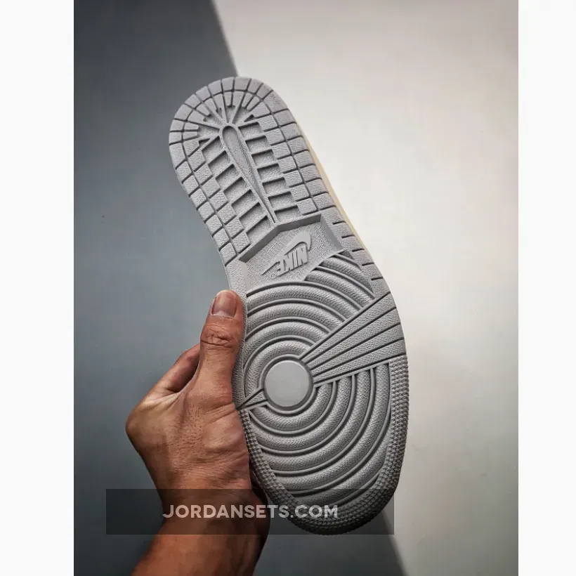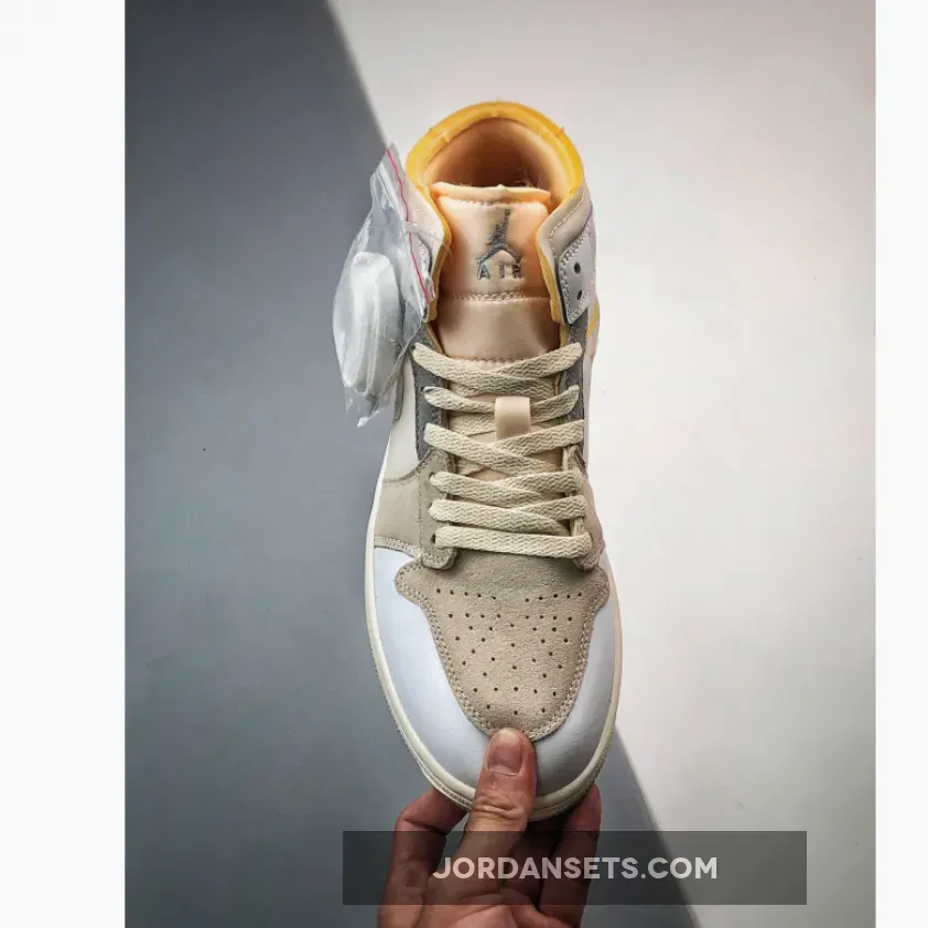 Originally thought to be a collaboration with CLOT and now dubbed the “Inside Out” colorway, the sneaker uses a white leather base with grey and bone overlays featured throughout with the paneling and layering inverted. The tongue and collar use a deconstructed look exposing the foam used with the Swoosh seen in White with orange hits. The Jumpman appears on the tongue with the Wings logo on the grey suede heel overlay. Lastly a white midsole and grey outsole finish off the sneaker.