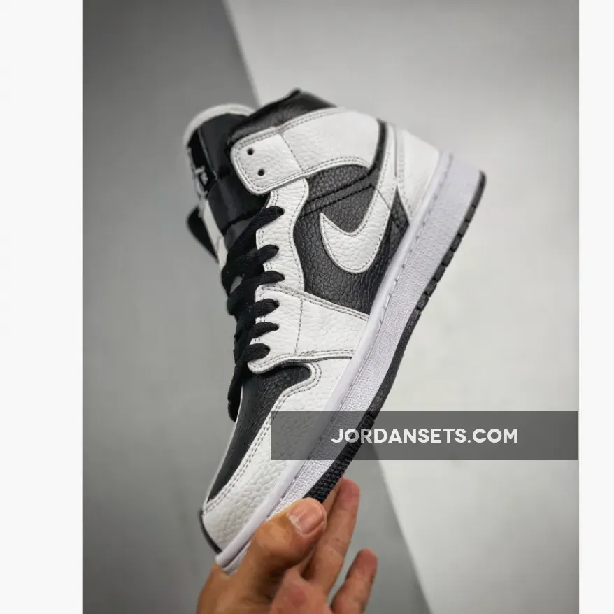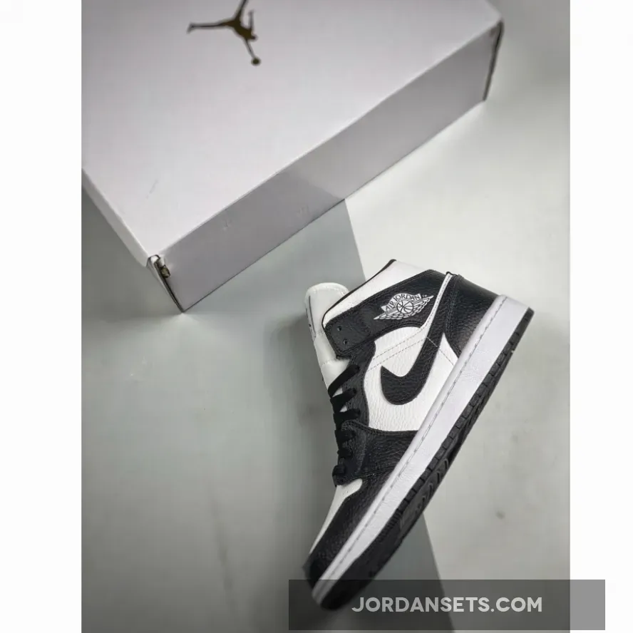 This offering of the mid-top Air Jordan 1 comes constructed in a full tumbled leather build featuring a White base with Black overlays on the lateral, and the opposite used on the medial. Split nylon tongues atop a White midsole and Black rubber outsole completes the design.