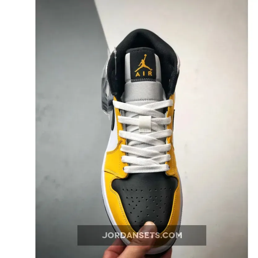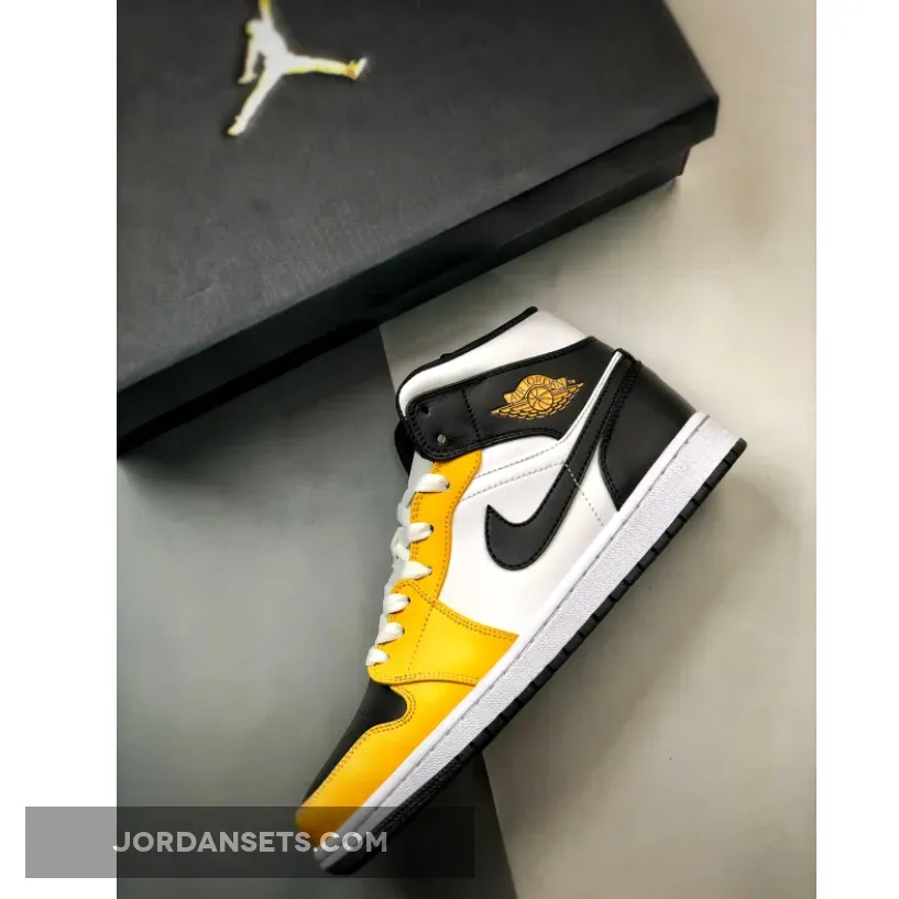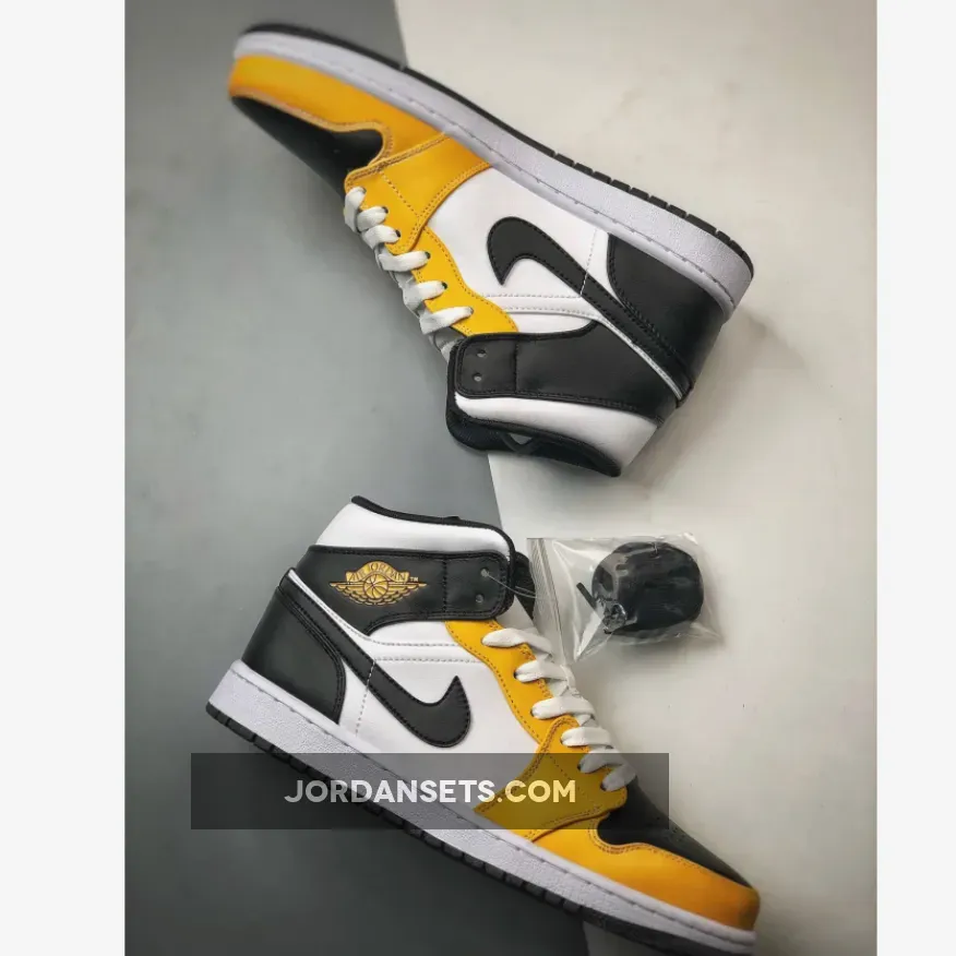 Featuring a “Yellow Ochre” tint at the forefoot and lace collar paired with a black toe-box and ankle collar, this Air Jordan 1 Mid cleans up with Away whites at the mid-panel and ankle padding. No need to explain, but these are indeed a perfect fit for anyone yearning for a seventh title at (the stadium formerly known as) Heinz Field.