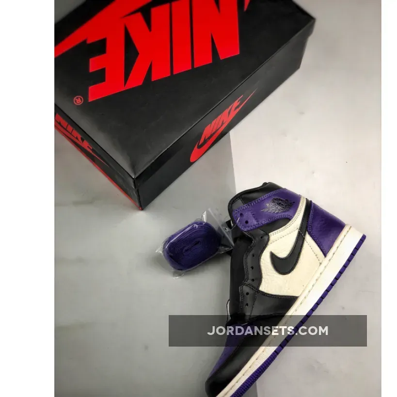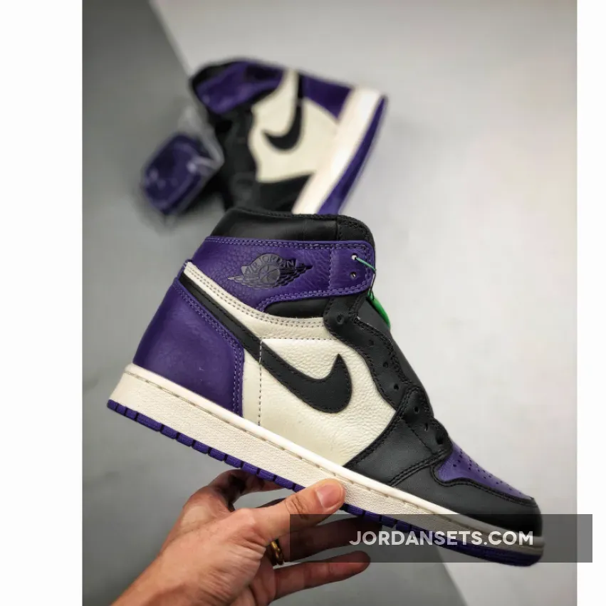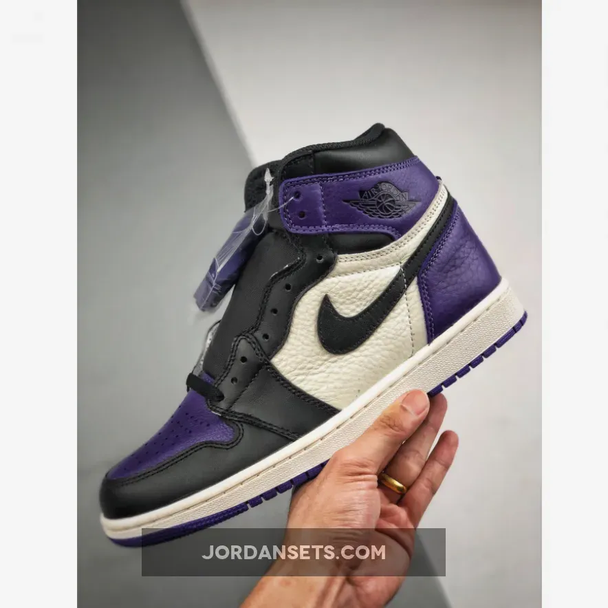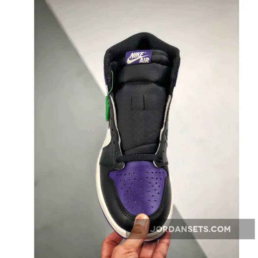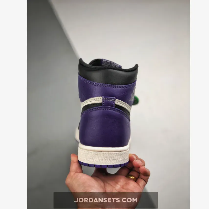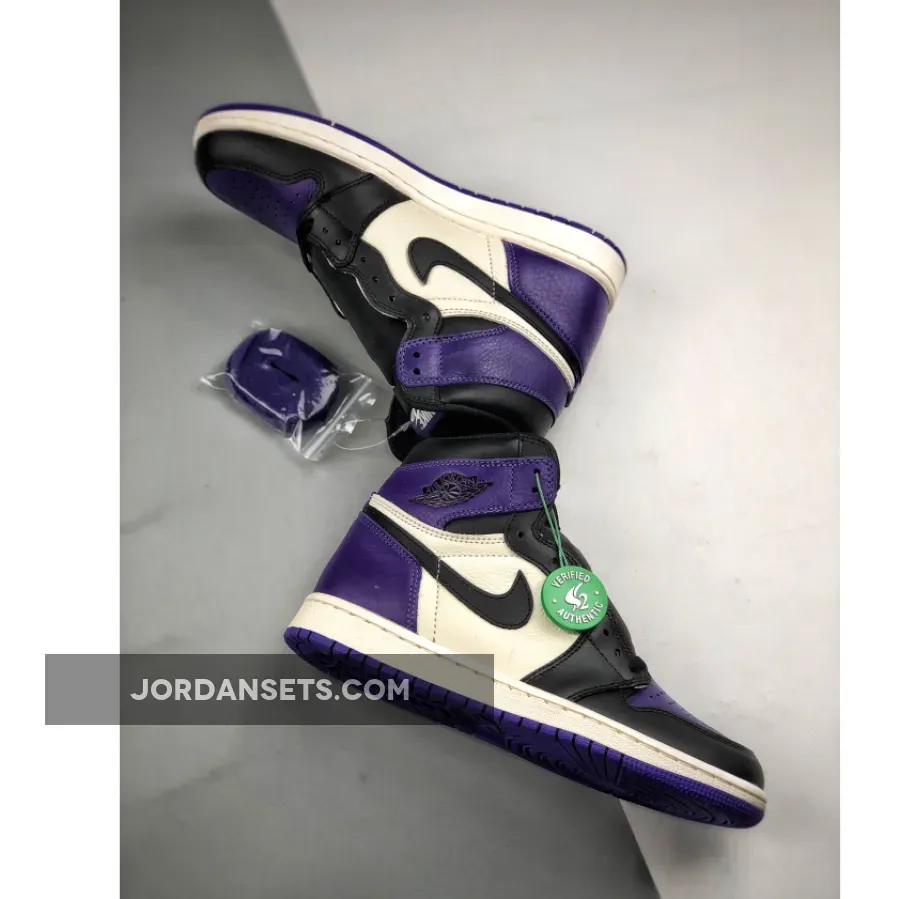 Looking closer this Air Jordan 1 features a Court Purple, Sail and Black color combination. Utilizing Court Purple around the collar, heel, on the toe and outsole. In addition we have Nike Air branding on the heel, Black wraps the toe, eyestays, Nike Swoosh and Wings logo. Completing the look is White on the panels and midsole.