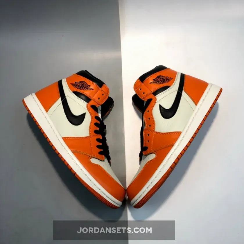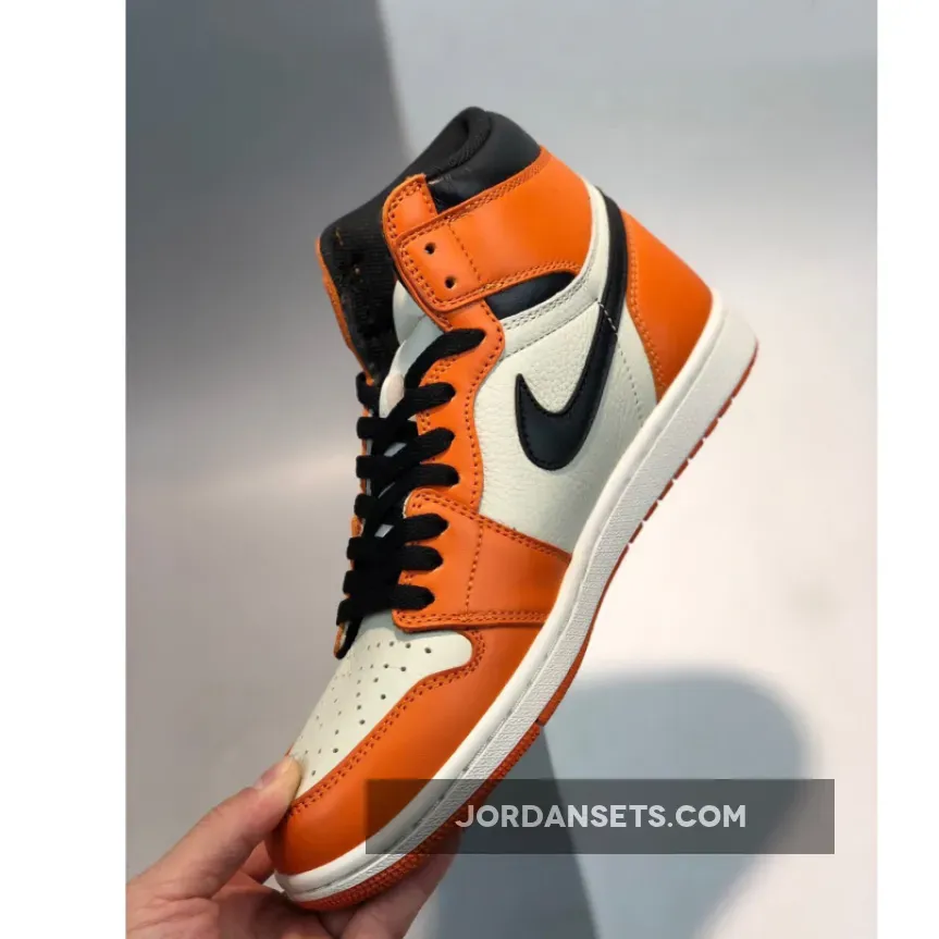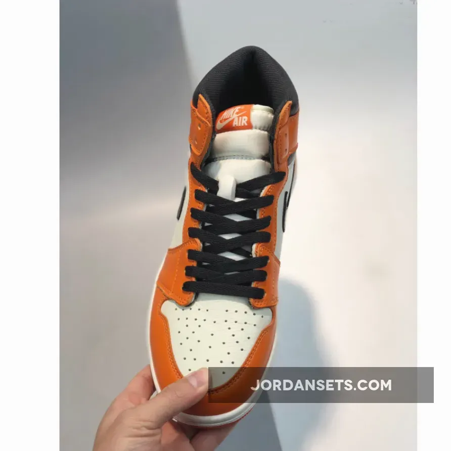 In 1985 on a Nike Europe tour, Michael Jordan shattered a backboard when throwing down a monstrous dunk while wearing an orange, black, and white uniform. Commemorating the moment and uniform, a 2015 Air Jordan 1 ‘Shattered Backboard’ (aka ‘Shattered Backboard’ 1.0) sneaker was released. Shortly after in the Fall of 2016, an Air Jordan 1 ‘Shattered Backboard Away’ (aka ‘Reverse’ and ‘Shattered Backboard 2.0’) was released. This sneaker keeps the black laces and Nike branding, but swaps out the orange toe box and black around the toe and tongue for white.