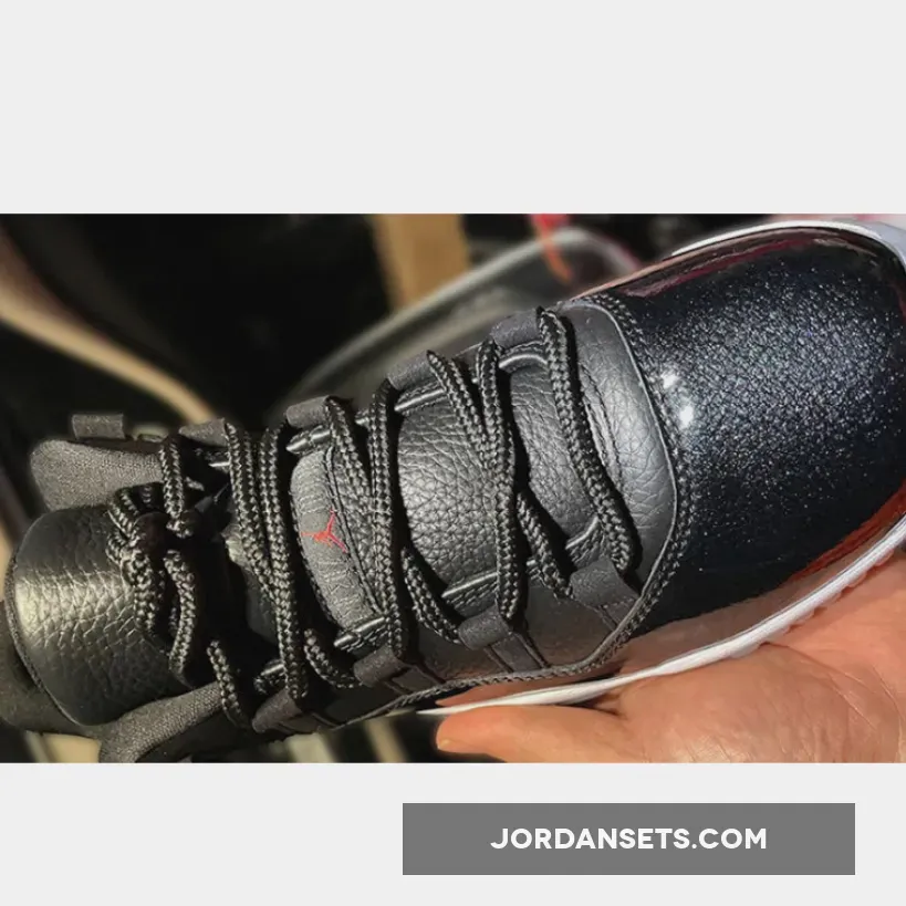 The shoes are a nod to the Chicago Bulls‘ 1995-1996 NBA season when Michael Jordan, Scottie Pippen, Dennis Rodman and company achieved a 72 wins and 10 losses in the regular season — the second greatest record in the league’s history to-date. It also harks back to 2015 when the original Air Jordan 11 model released with this same exact theme. Much like the rendition from seven years ago, the uppers arrive engineered with a solid black tumbled leather material that makes up the side walls and the tongues. “Gym Red” accents appear on the Jumpman insignias atop the heels and banners on the middle of the throat, while the “23” hits on the rear blend in with its stealthy backdrop. Mudguards discards their customary patent leather material and instead brings in a premium leather that is coated with a slightly shimmery gloss.