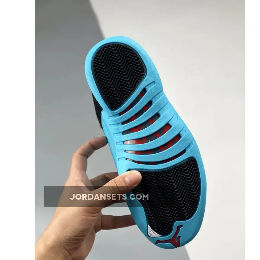 Dressed in a Black, Gym Red, and Gamma Blue color scheme. This offering of the Air Jordan 12 features a Black nubuck upper paired with Gym Red heel tabs and Jumpman logos. Gamma Blue highlights the shoe on the overlays and rubber sole.