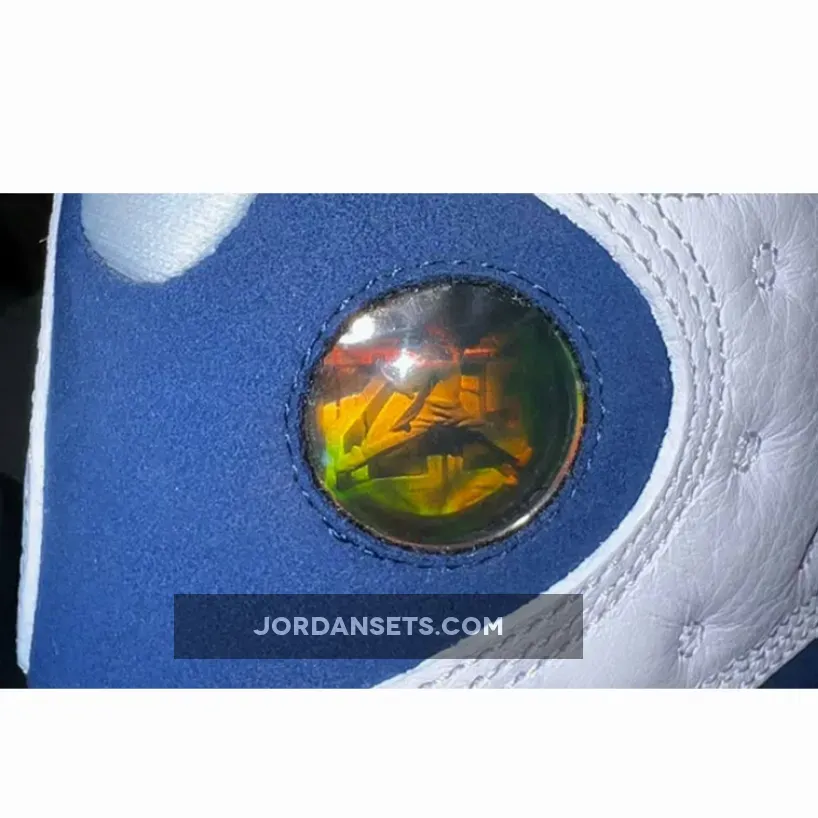 The 25-year-old Air Jordan 13 has an exciting new release in primary colours. Presenting the Air Jordan 13 French Blue. This AJ13 has an attractive and back-to-basics “White/ Fire Red/ French Blue/ Light Steel Grey” colour scheme. However, it’s the French Blue that stands out. This strong purplish-blue shade was used by French infantrymen in the 19th century. And now, it’s the attractive hue of the suede heel panels and lower mid-panels. The dimpled and pebbled leather on the upper part of the shoe is in contrasting crisp white while the toe section is in neutral Light Steel Grey. A pop of red comes in the form of the Fire Red Jumpman on the oversized white tongue and the signature panther’s eye green emblem that makes the AJ13 so distinctive sits on the lateral side of the heel.