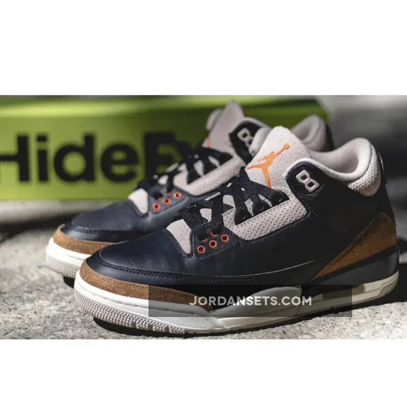 Air Jordan 3 Desert Elephant expertly mixes sleek and bold elements. Starting off with a black pebbled leather base and matching smooth leather mudguard, this AJ3 rendition complements the classic design with an understated grey-beige perforated eye stays and collar. Contrasting it are the pops of red on the eyelets and Jumpman branding. Meanwhile, Nike’s iconic “Elephant” print adds extra flair as it decorates the toe and heel.