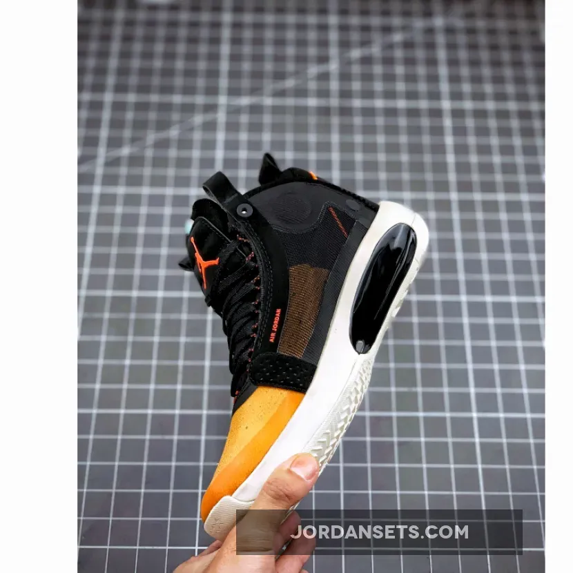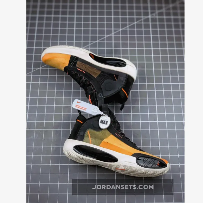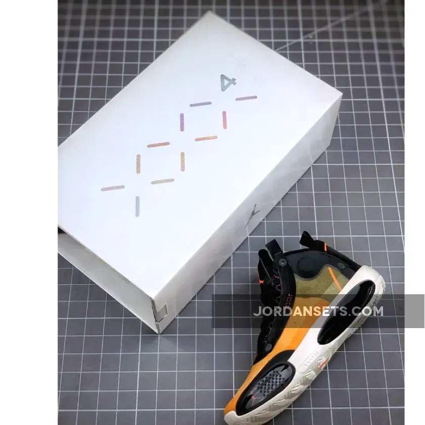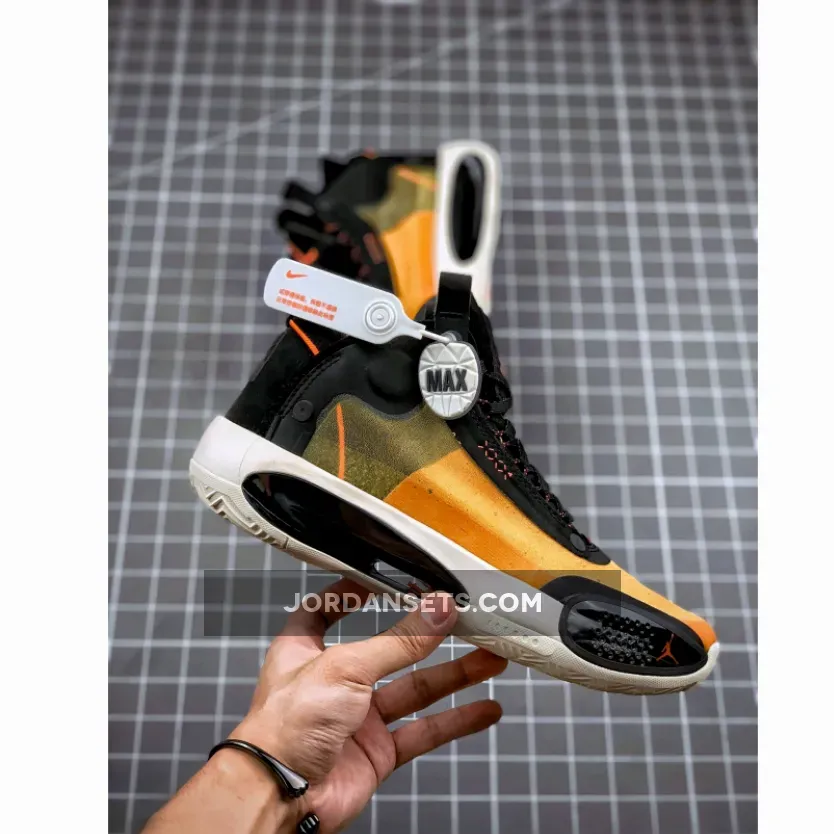 Dressed in an Amber Rise, Black, Sail and Metallic Silver color combination. Instead of featuring a translucent upper, this Air Jordan 34 features TPE layering on the lateral side and toe. In addition Orange covers part of the upper along with Black detailing. Other highlights includes the new Eclipse Plate, herringbone traction on the outsole and Sail on the midsole.