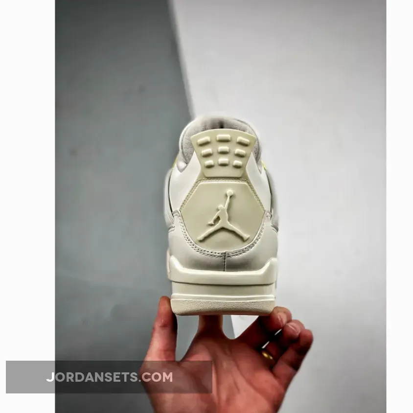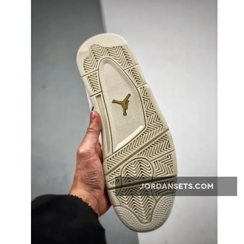 the Air Jordan 4 “Sail” is an extremely straightforward, understated colorway. Much like the mock-ups initially suggested, the design is predominantly dressed in its titular hue.. This pair will feature Sail throughout the upper constructed with leather, with Metallic Gold accents placed within the Air unit and on the wing eyelets. A premium feel is the debossed Jumpman and Flight on the tongues. Gold Jumpman logos on the tongue add a more luxurious feature to the shoe. Sail white PU midsoles and semi-translucent outsoles complete this colourway.