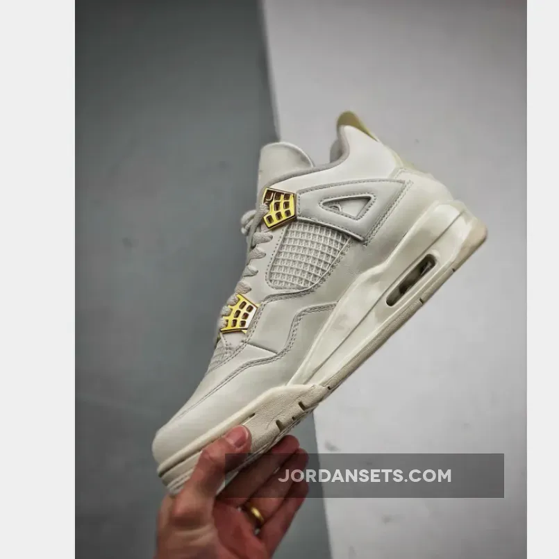 “I’m thoroughly impressed with my new Air Jordan 4 ‘Sail/ Metallic Gold-Black’! The Sail leather upper is top-notch, while the metallic gold accents add a touch of sophistication. The quality is exceptional – the materials feel premium and durable. 5/5 stars!”