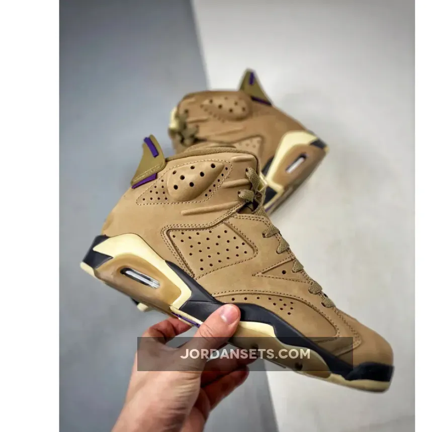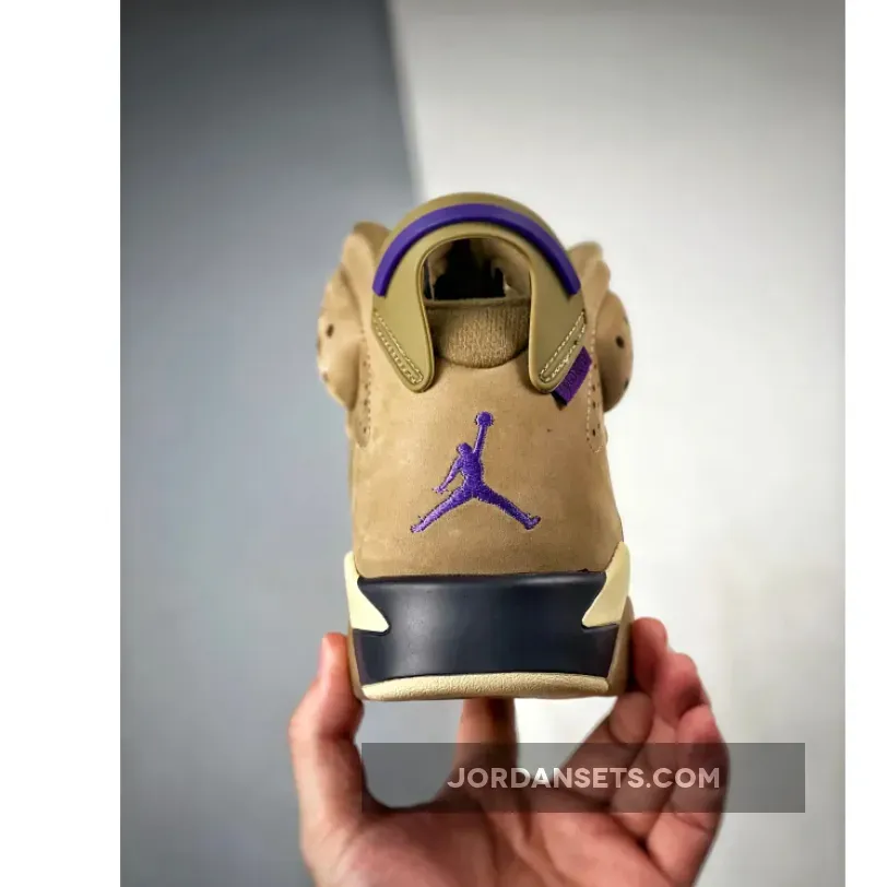 Utilizing Brown Kelp across the upper with Gore-Tex, which will allow this pair to be water-resistant. “Court Purple” accents appear at the heel tab, GORE-TEX tag and the Jumpman logos spotted at both the tongue and heel. Its smoother upper is backed by GORE-TEX technology, ensuring that it can resist more rain than a traditional AJ6. Rounding out the look, the sole unit sees black and yellow