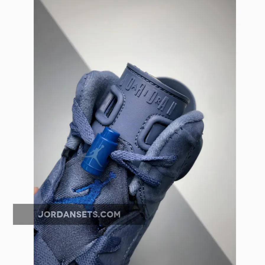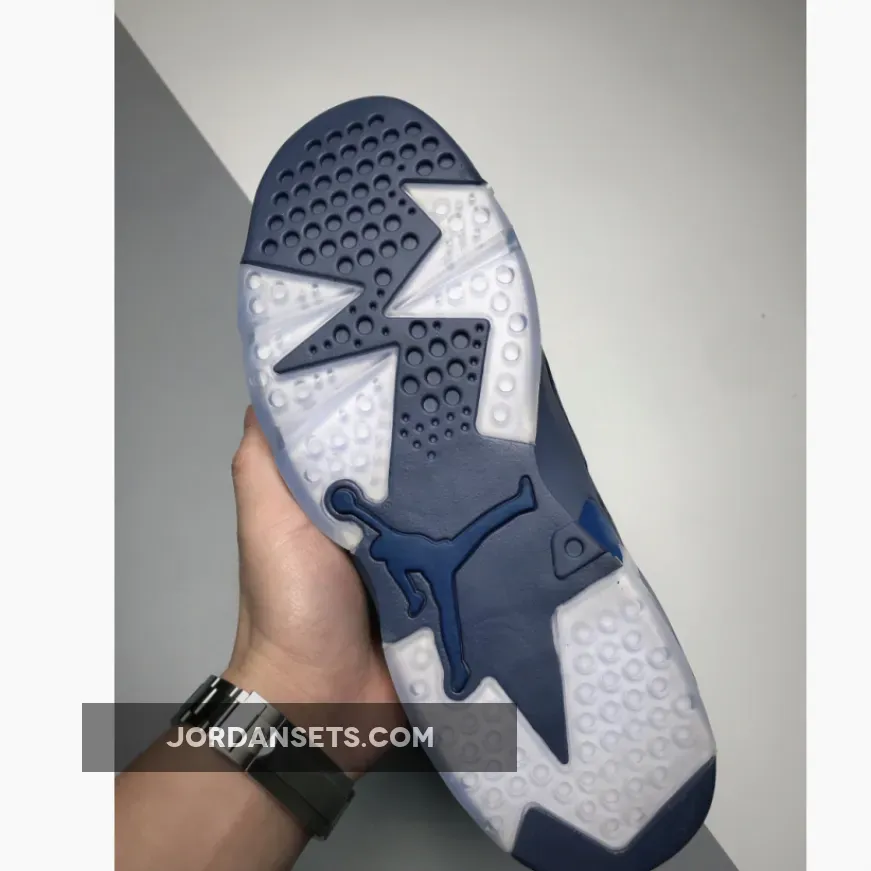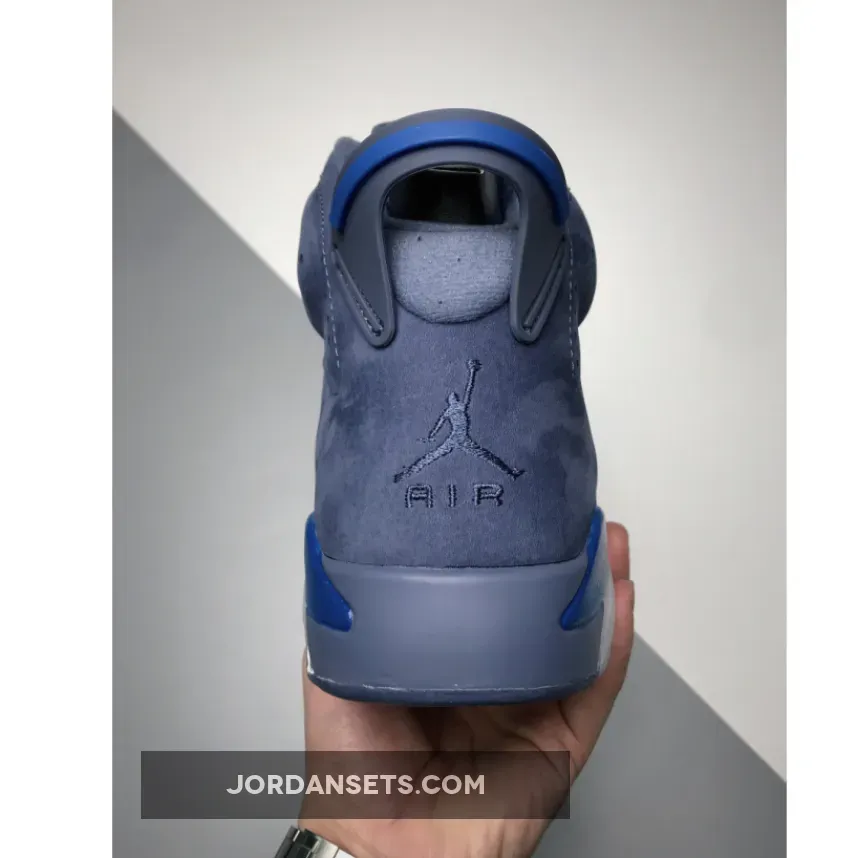 Dressed in the Minnesota Timberwolves colors. This Air Jordan 6 features a Diffused Blue leather upper with Court Blue accents. An icy translucent outsole completes the design.