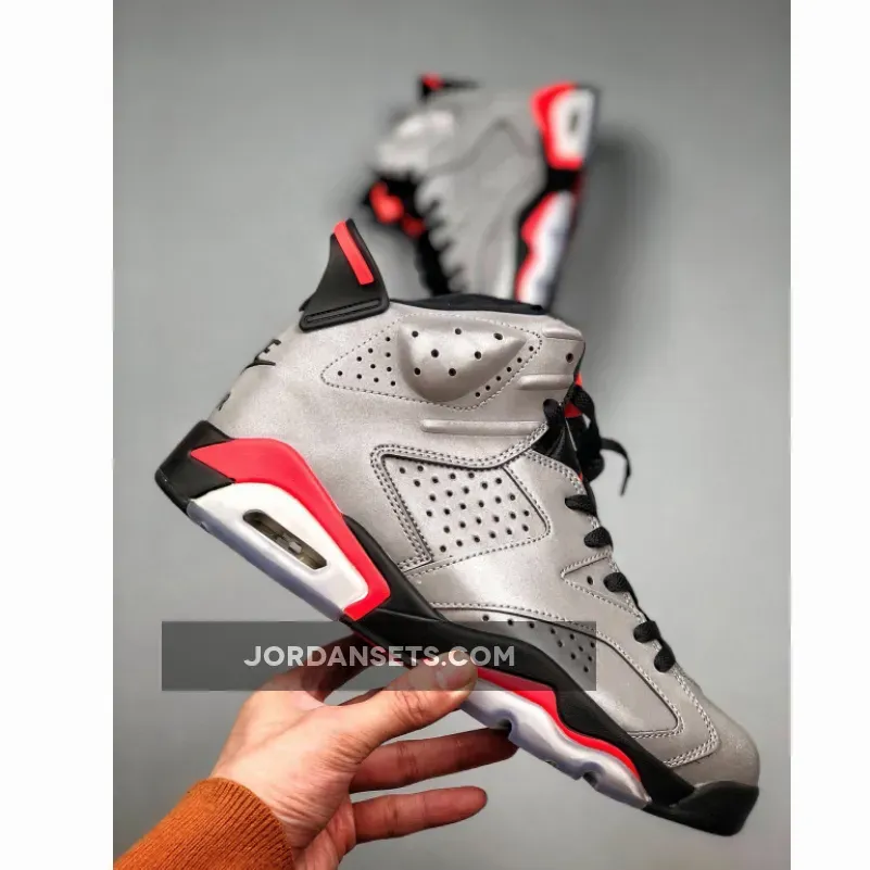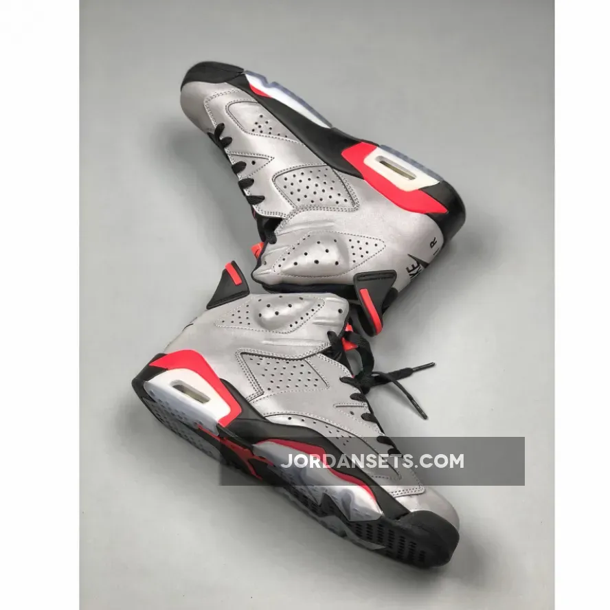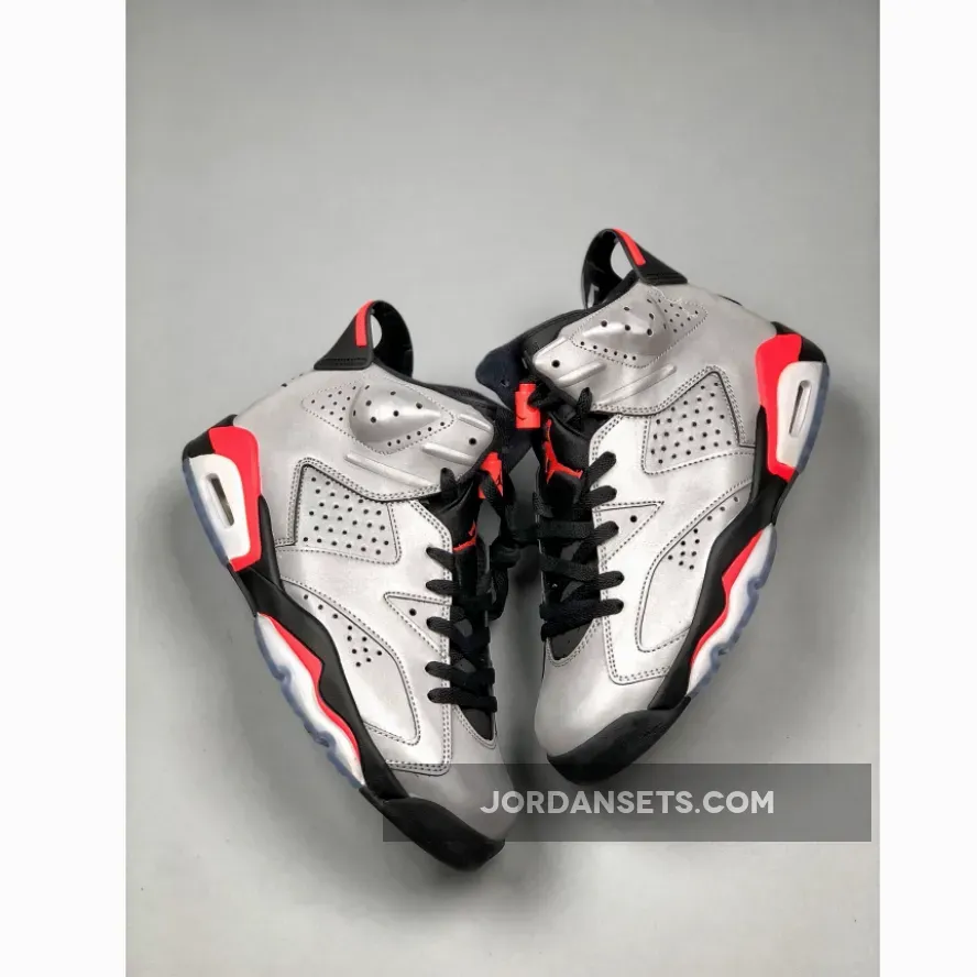 As you can see, this Air Jordan 6 features a full 3M reflective upper while both Black and Infrared detailing is seen on the midsole, tongue and heel. In addition we have Nike Air branding on the heel while a translucent icy outsole completes the look.