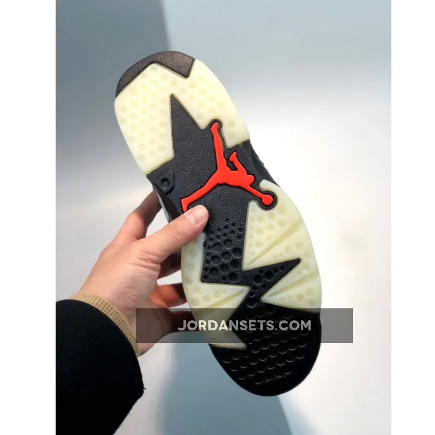 Dressed in a Washed Denim, Sail, Varsity Red, and Black color scheme. This Air Jordan 6 features a washed denim upper, Tan leather on the tongue with a Red lace lock. A Black midsole atop milky translucent outsole will complete the design.