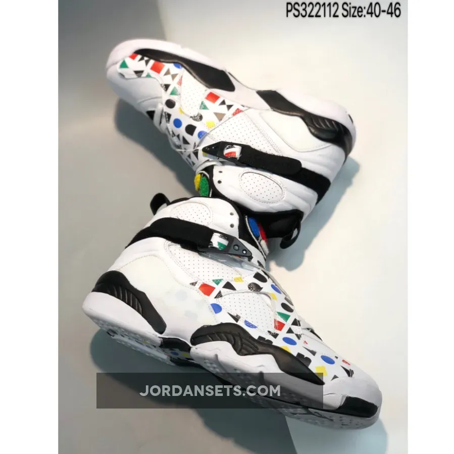 Looking closer the Air Jordan 8 releasing for Quai 54 features Black used across the upper while various shapes land on the ankle collar, part of the side, heel and insoles. Constructed with suede and mesh, we also have the traditional carpet like Jordan Brand on the tongue with the right displaying Paris colors and the left done in Green, Red and Yellow. White lands on the Jumpman while the same shade covers the midsole. Finishing the look is a translucent rubber outsole.