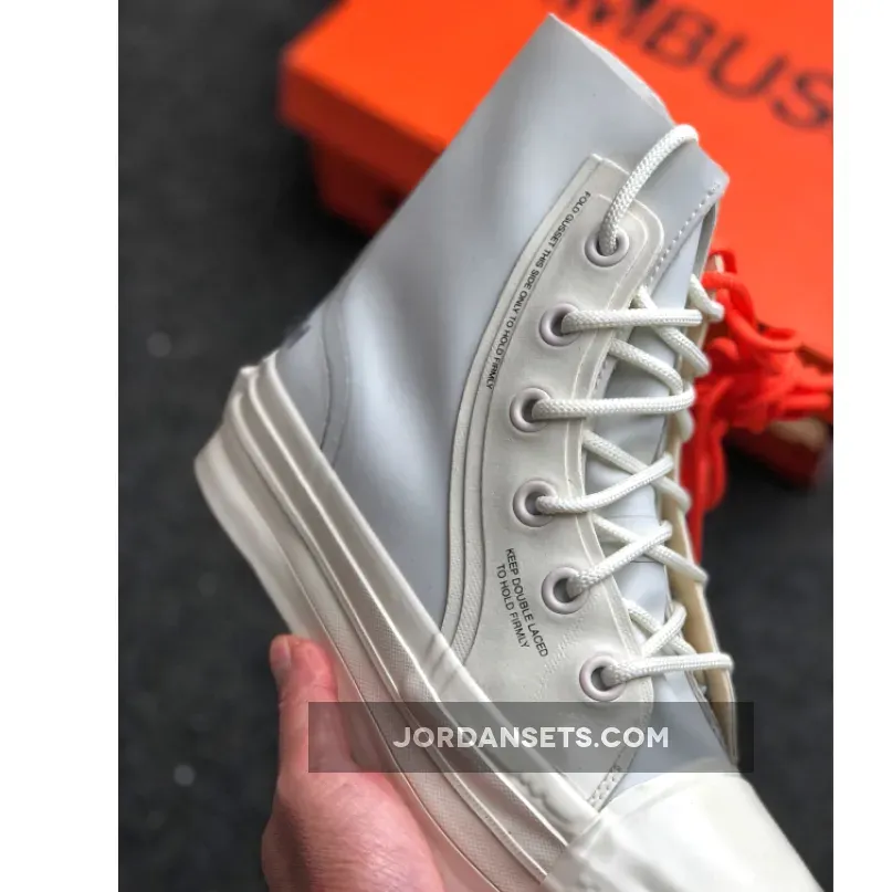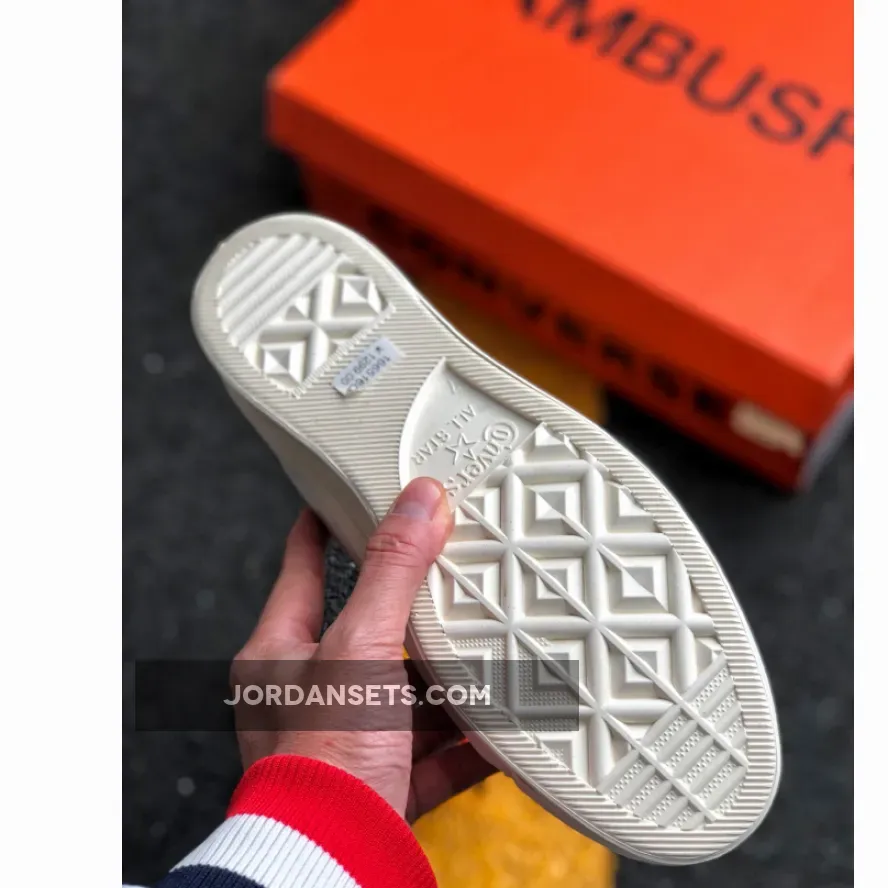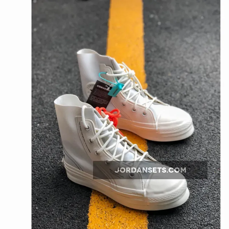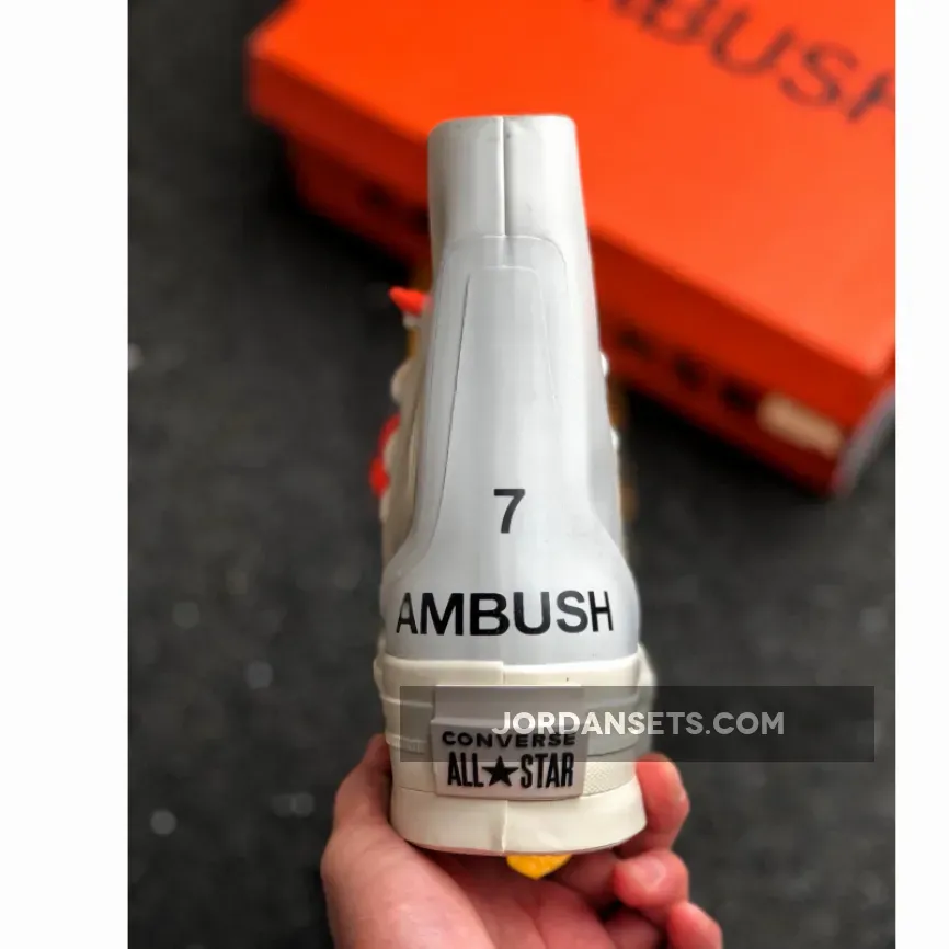 A reimagining of two staples, the Chuck 70, dressed entirely in white tones, is largely the most imposing while the sleeker (though not by much) Pro Leather quiets down in its blacked out color scheme. Marking the first reworking of the model at the hands of any designer, the latter silhouette sees to rubberized soles, the classic Chevron logo, and gusseted tongues. The Chuck 70, however, is in closer homage with soles heightened by more than double and markings at the eye stay denoting how to wear. “AMBUSH” prints on both at their heel — in contrasting type of black or yellow — with the size also emblazoned in bold face just above.