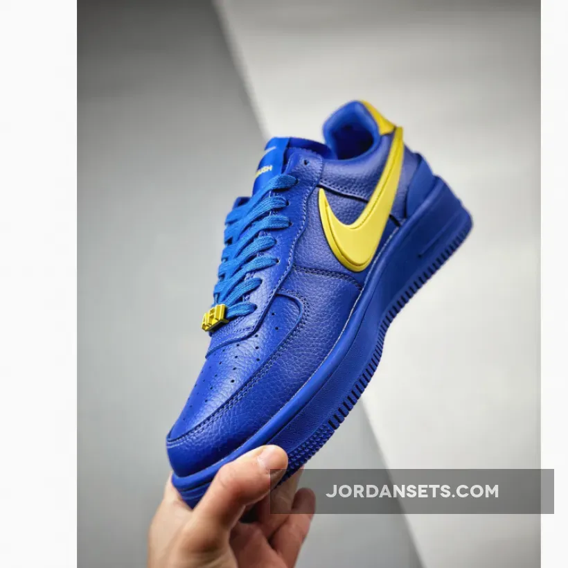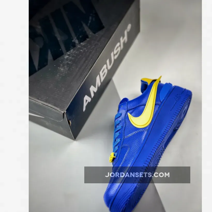 Korean-American fashion designer Yoon Ahn is extending her relationship with the Swoosh team by taking Bruce Kilgore’s 1982 Air Force 1 to her canvas. The duo made waves in the streetwear and sneaker industry with the release of the AMBUSH x Nike Dunk, which featured oversized Swoosh logos inspired by Japanese gangster bikes from the ’80s. Now, the AMBUSH x Nike Air Force 1 Low Blue Yellow is arriving with the same treatment.It features a tumbled leather base painted in a bold blue shade, covering all the components except the elongated Swoosh logos, forefoot lace dubraes, and branding, which prefer a contrasting bright yellow tone. In comparison to standard Air Force 1s you’ll find on store shelves, these are equipped with an AMBUSH-branded TPU heel clip which enhances the silhouette’s stability. This co-branded ensemble from AMBUSH and Nike is also releasing alongside Green, “Black” and “White” colourways.