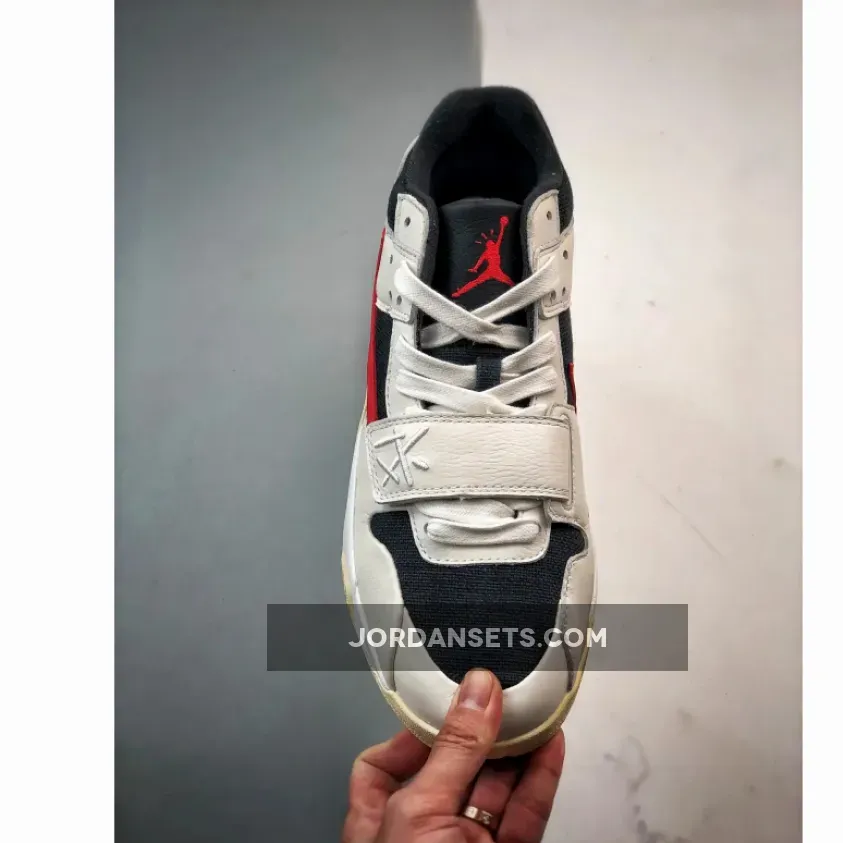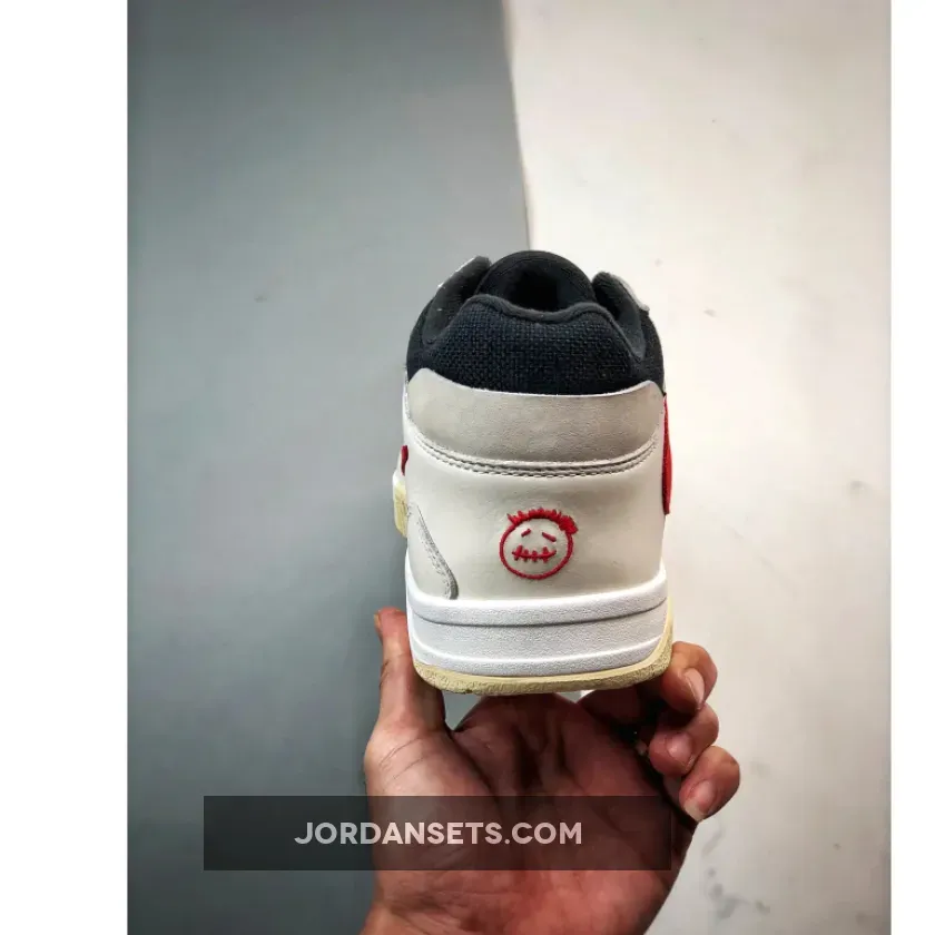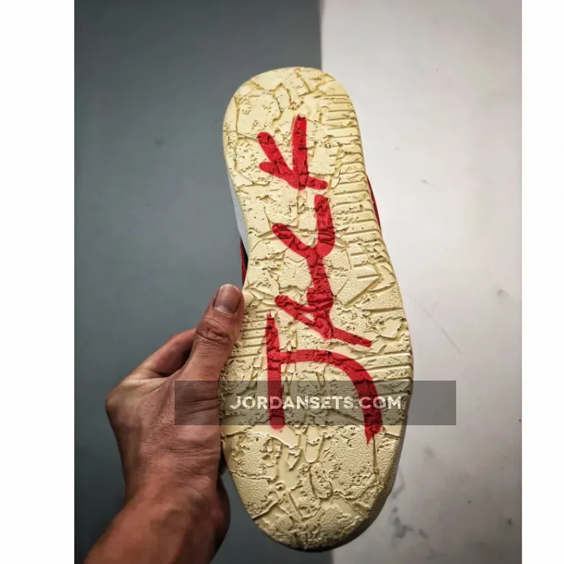 This pair has just been unveiled, sporting “University Red” at its Swooshes, the tongue’s Jumpman logo and the embroidered Cactus Jack face logo at the heel. Similar to the aforementioned “Sail” pair, a textile base is joined by leather overlays with this colorway utilizing black and white at the two areas respectively. Its signature midfoot strap is also featured in white leather while the sole unit pairs a white midsole with an off-white outsole.