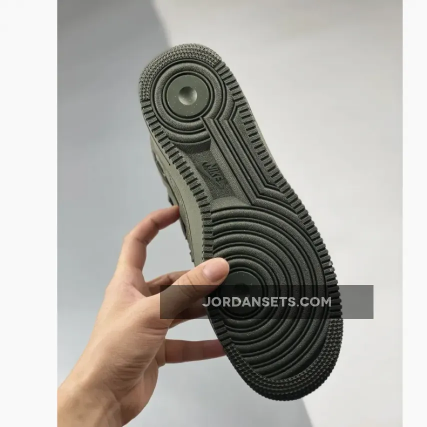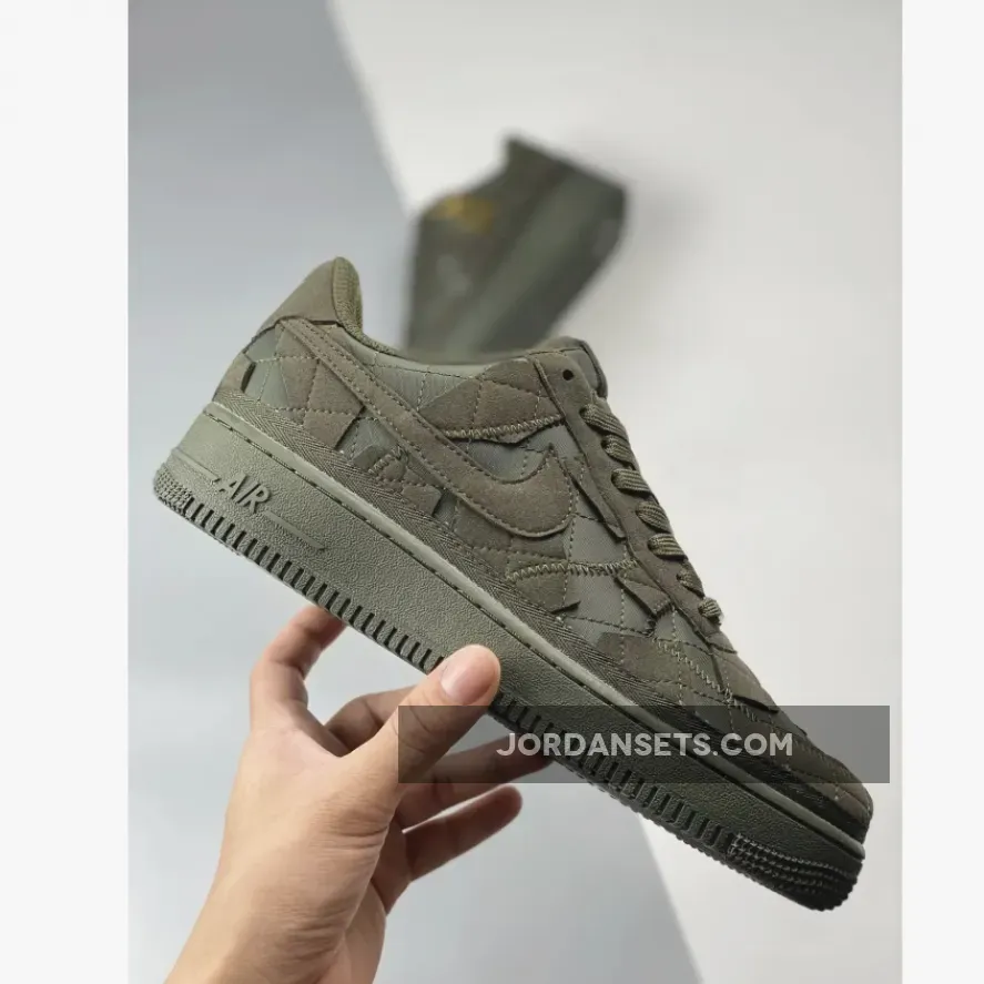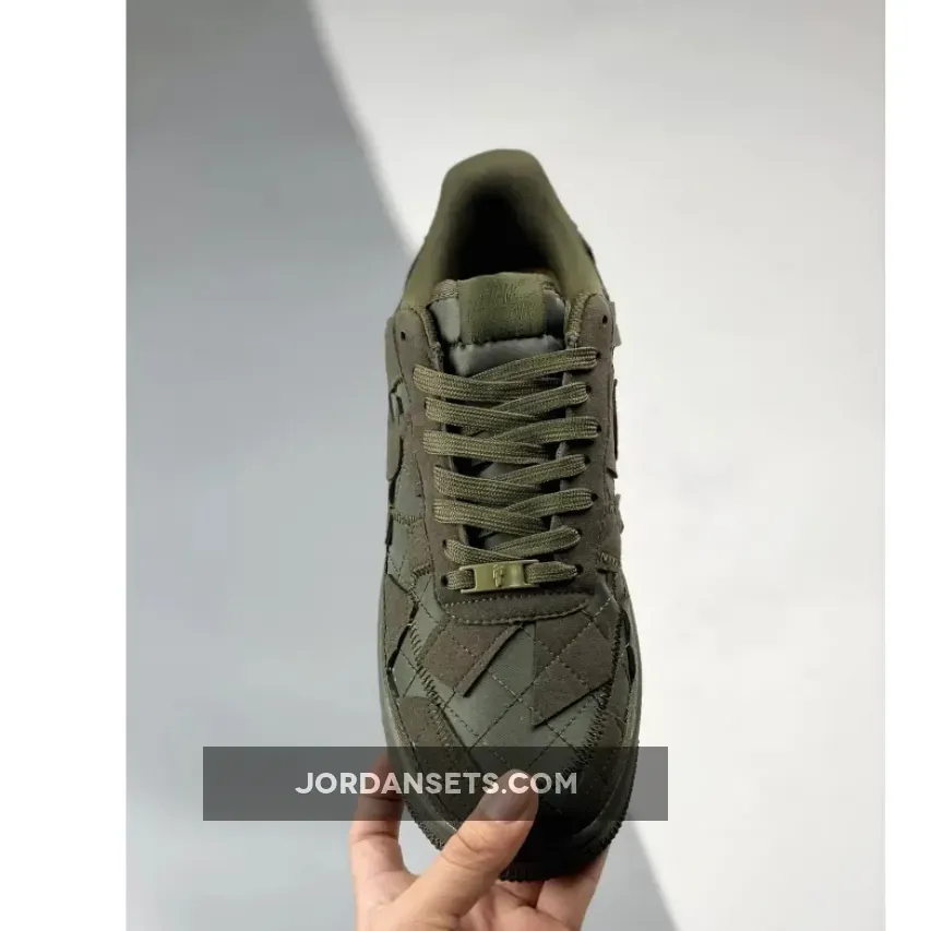 This Nike Air Force 1 Low has a quilted upper made with “Sequoia” suede, a dark fabric with a tinted green hue. The sneaker has a patchwork exterior complete with canvas and statement stitching. The shoe also features sustainable details as its made from recycled and vegan textiles.