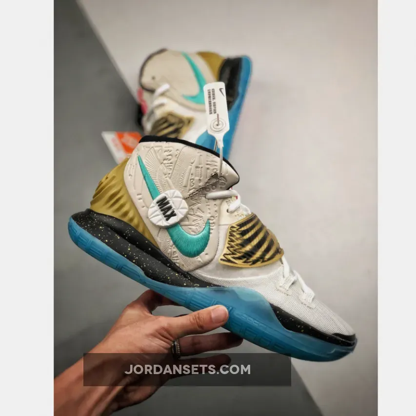 Continuing to tell the history of ancient Egypt, Concepts honors the Egyptian god Khepri Ra, who represents the movement of the rising sun. A Pink color scheme speaks to Khepri’s daily renewal of the sun and a scarab beetle on the strap is a homage to the ancient depiction of the Egyptian god. The other, a kids-exclusive, is inspired by King Tut and his extravagant tomb to create the Kyrie 6 Golden Mummy. Highlighting the opulence of the Pharaoh’s tomb, turquoise and cherry red hits act as a direct reference to the multitude of gems found on King Tut’s 24-lb gold mask. In a nod to ancient Egyptian customs, the sail color scheme represents the traditional burial cloths that were essential to the mummification process.