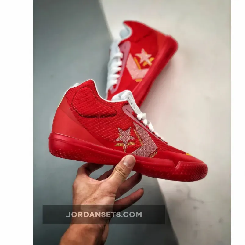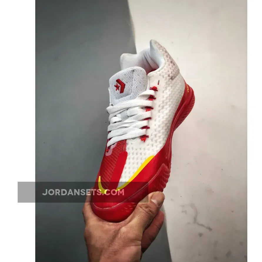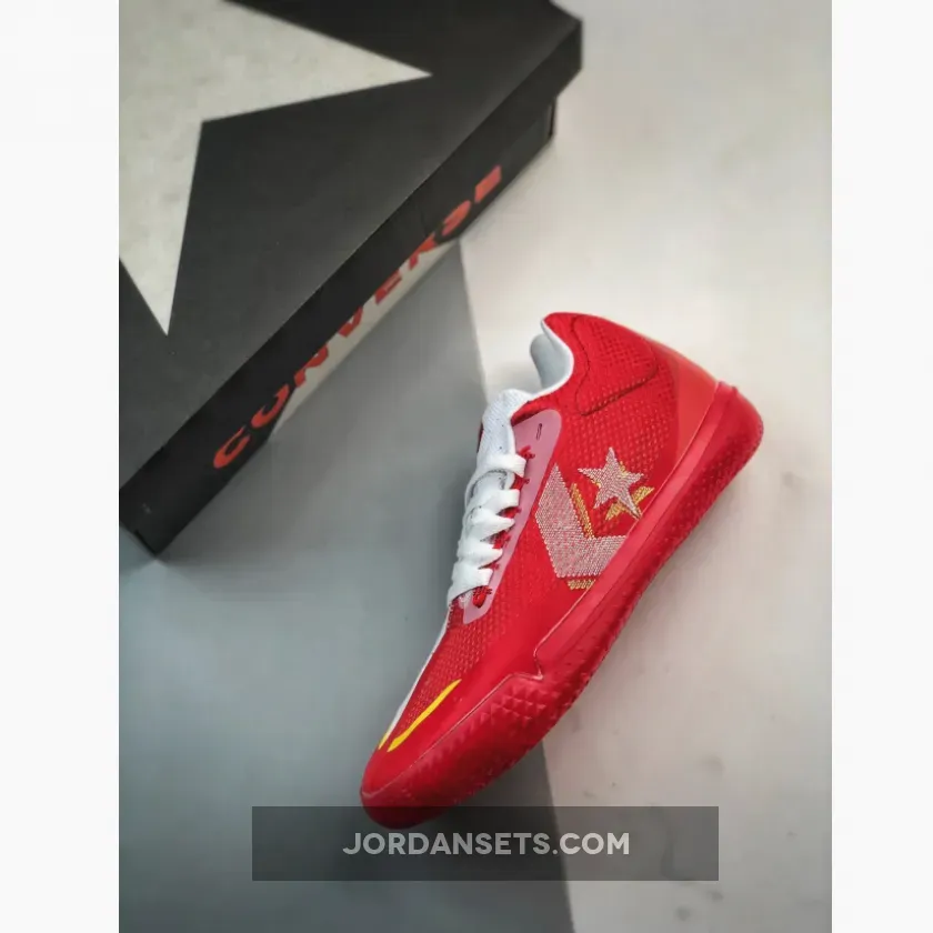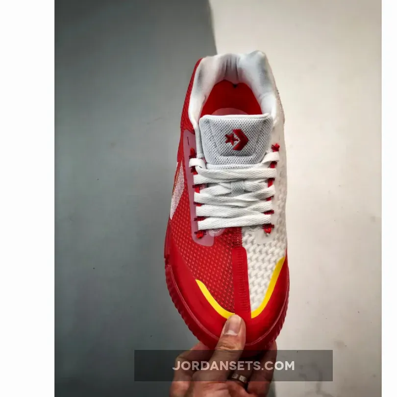 A low-top, updated iteration of 2019’s All Star Pro BB, the All-Star BB Evo is a tale of two sides. Lateral halves are dressed entirely in a high-heat crimson with embroidered white and gold details on the Chevron, while medial sides dial things down by equipping simple white mesh with small touches of yellow and red around the heel. Drop-in React midsoles offer responsive comfort.
