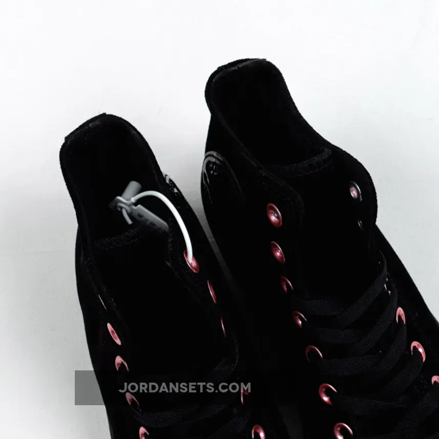 This signature high top silhouette is a staple for any collection. Perfect for treating your loved one this February, Converse’s heart adorned update features pink eyelets and a roses are red rendition of the brand’s famous All Star logo. At the heel, a mini embroidered heart stands out in crimson, matching the shoe’s inner lining which is also adorned in a repeated love heart pattern. Complete with all of the features that you know and love, the Converse Chuck Taylor All Star Hearts High Top Black includes a diamond outsole, glossy round toe, and an OrthoLite cushioned insole for extra comfort.
