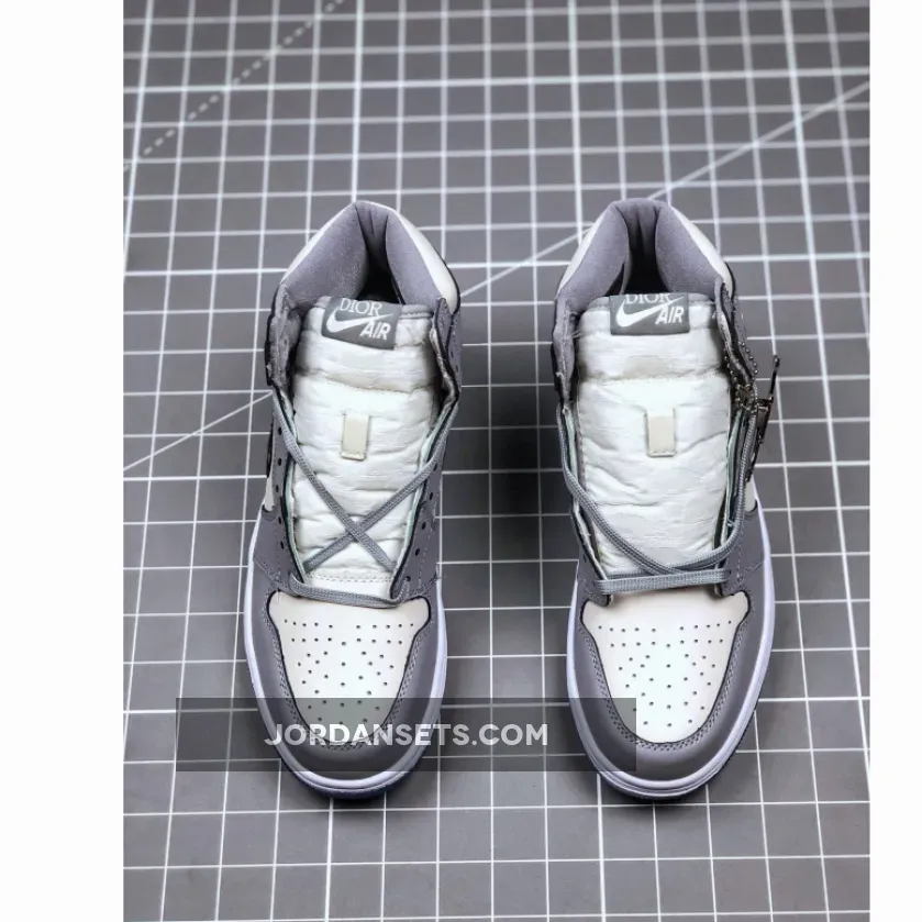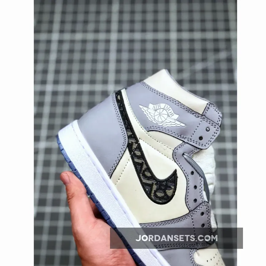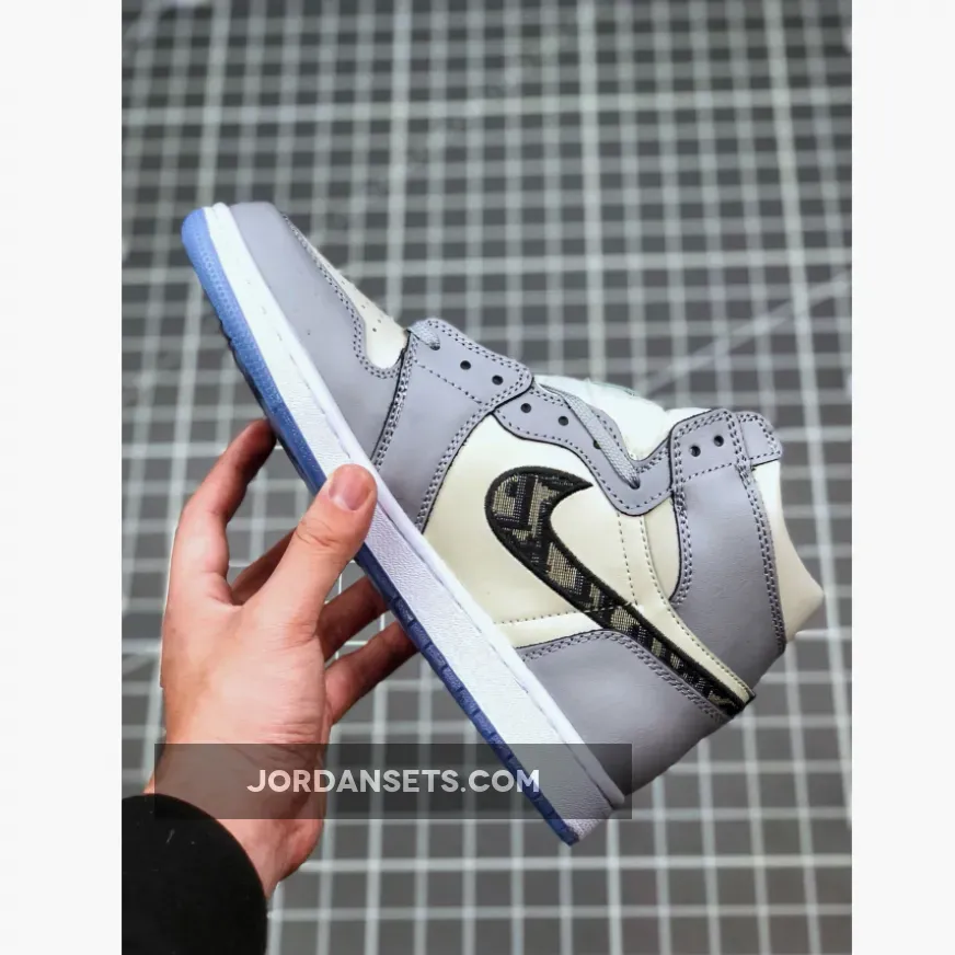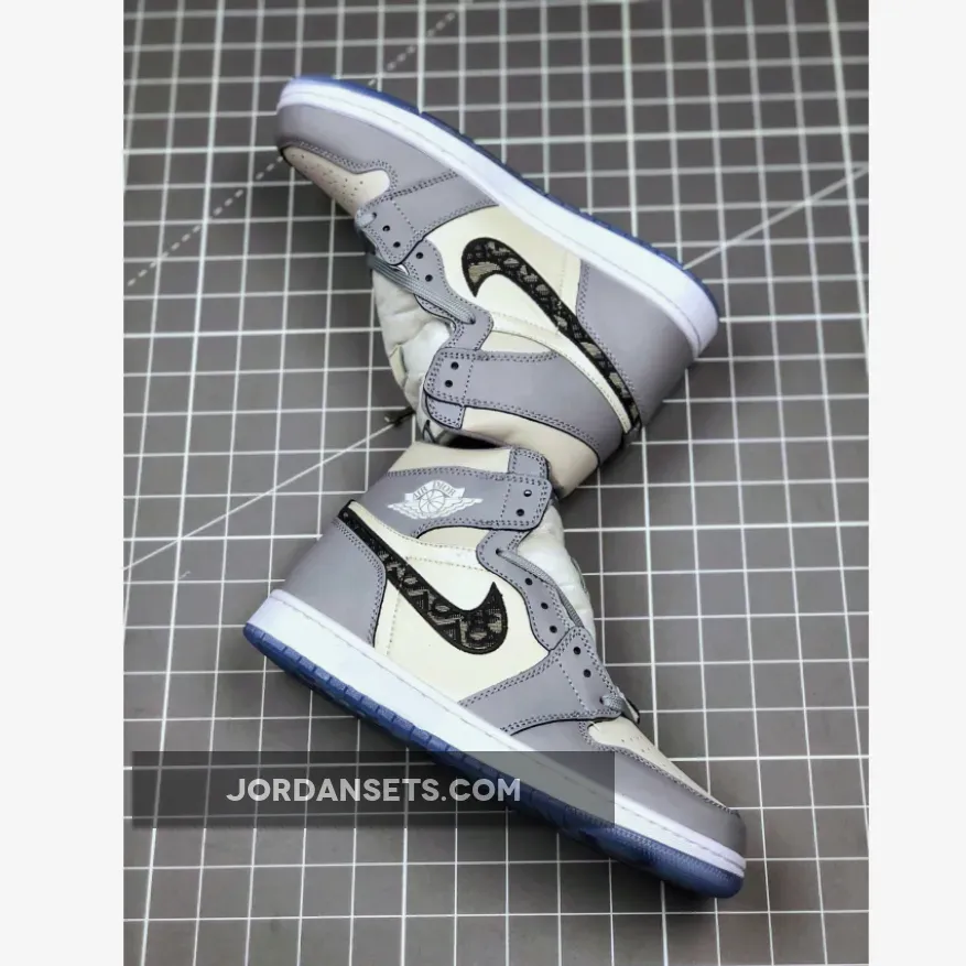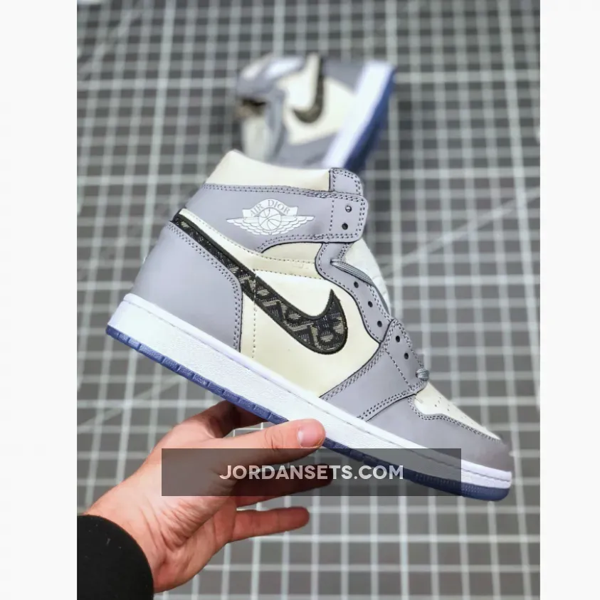 This Dioor x Air Jordan 1 features a White and Grey upper with “Air Dioor” branding on the tongues and above the Wings logo. An all-over printed Swoosh logo on the sides atop a co-branded icy translucent outsole with a Silver Jumpman and “Air Dioor” Wings hangtag completes the design.