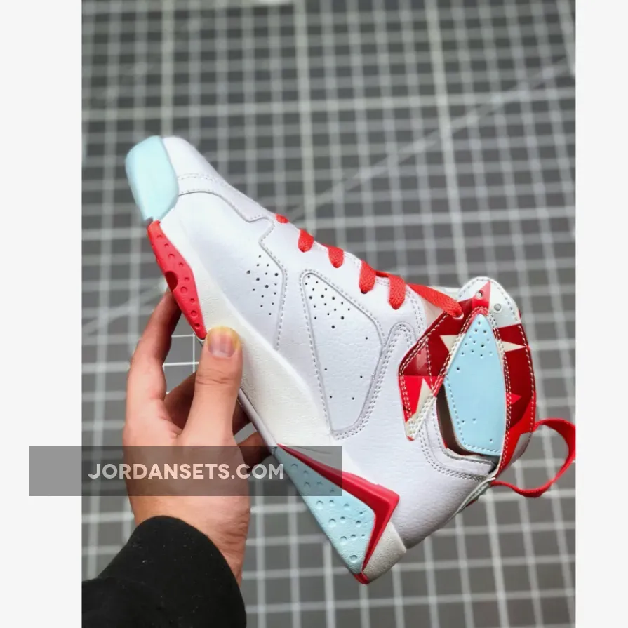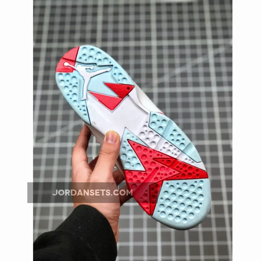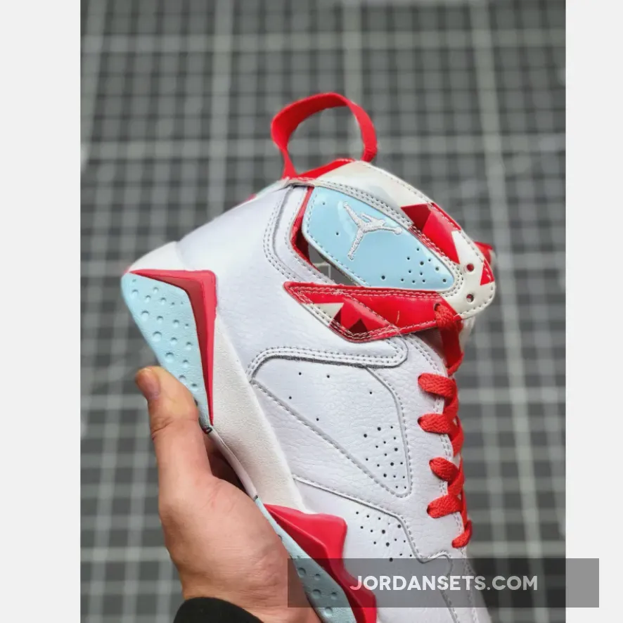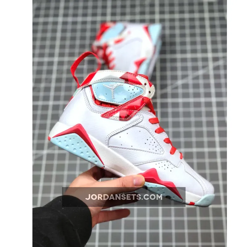 While the theme to this collection has yet to be confirmed, this release comes dressed in a White, Topaz Mist, Ember Glow, and Gym Red color scheme. Much like the other models, the shoe features a White leather upper paired with Light Blue and Red contrasting accents. A unique pattern design is used along the ankle collars completed with a set of Red or Light Blue laces.