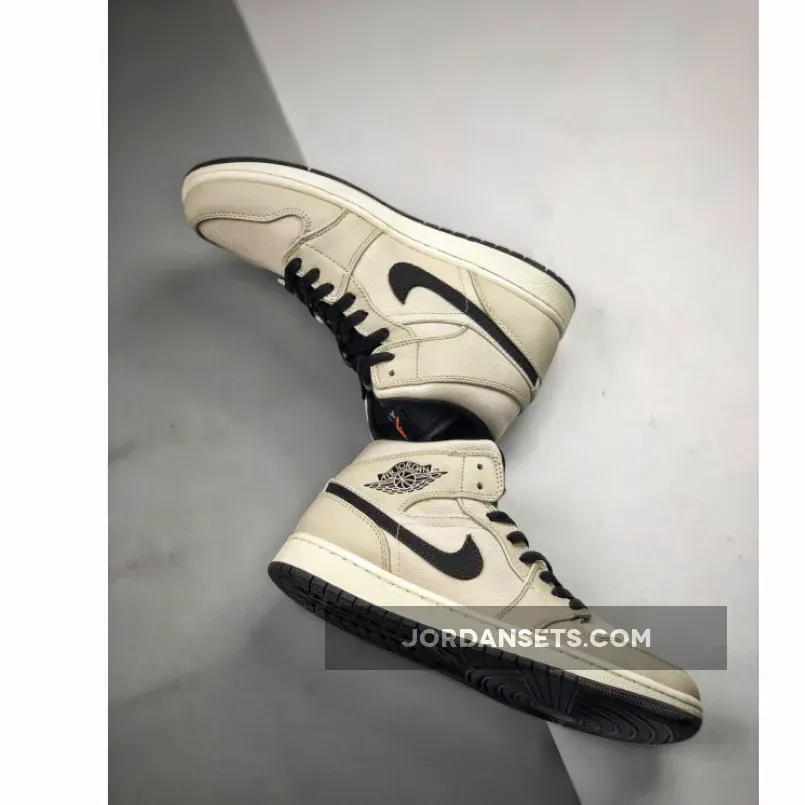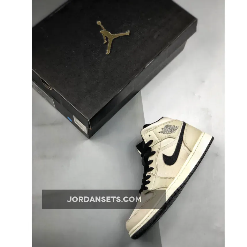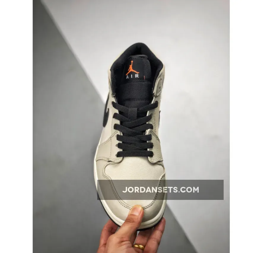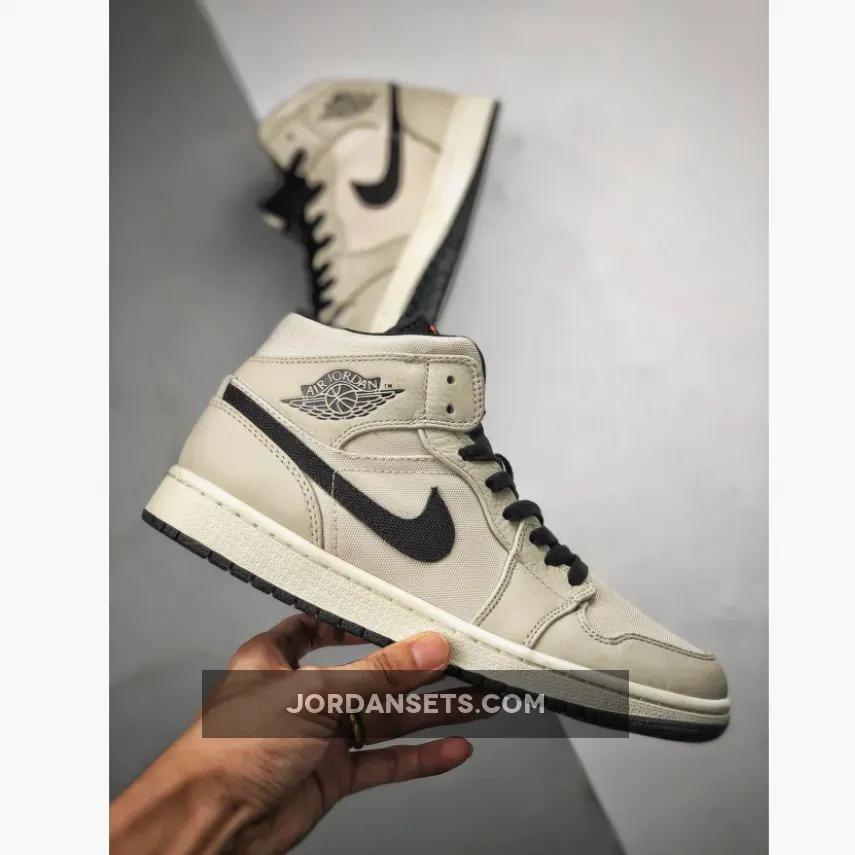 beige and black jordans #jordan 1 mid light bone #the bone cone #air jordan 1 mid light bone #jordan 1 beige
